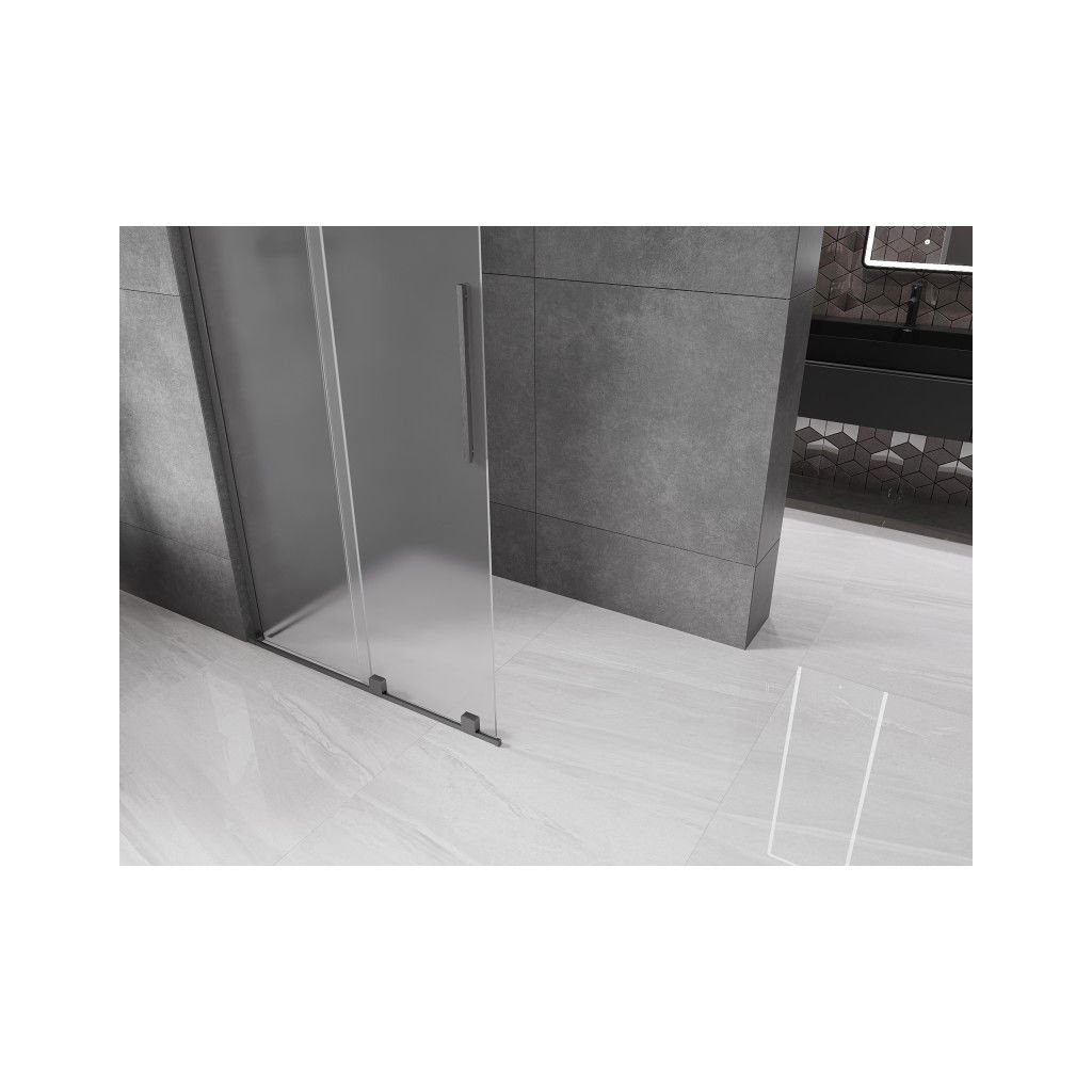 Mexen Velar L, posuvná sprchová zástěna Walk-in 90 x 200 cm, 8mm sklo námraza, grafit broušený, 871-090-003-33-66