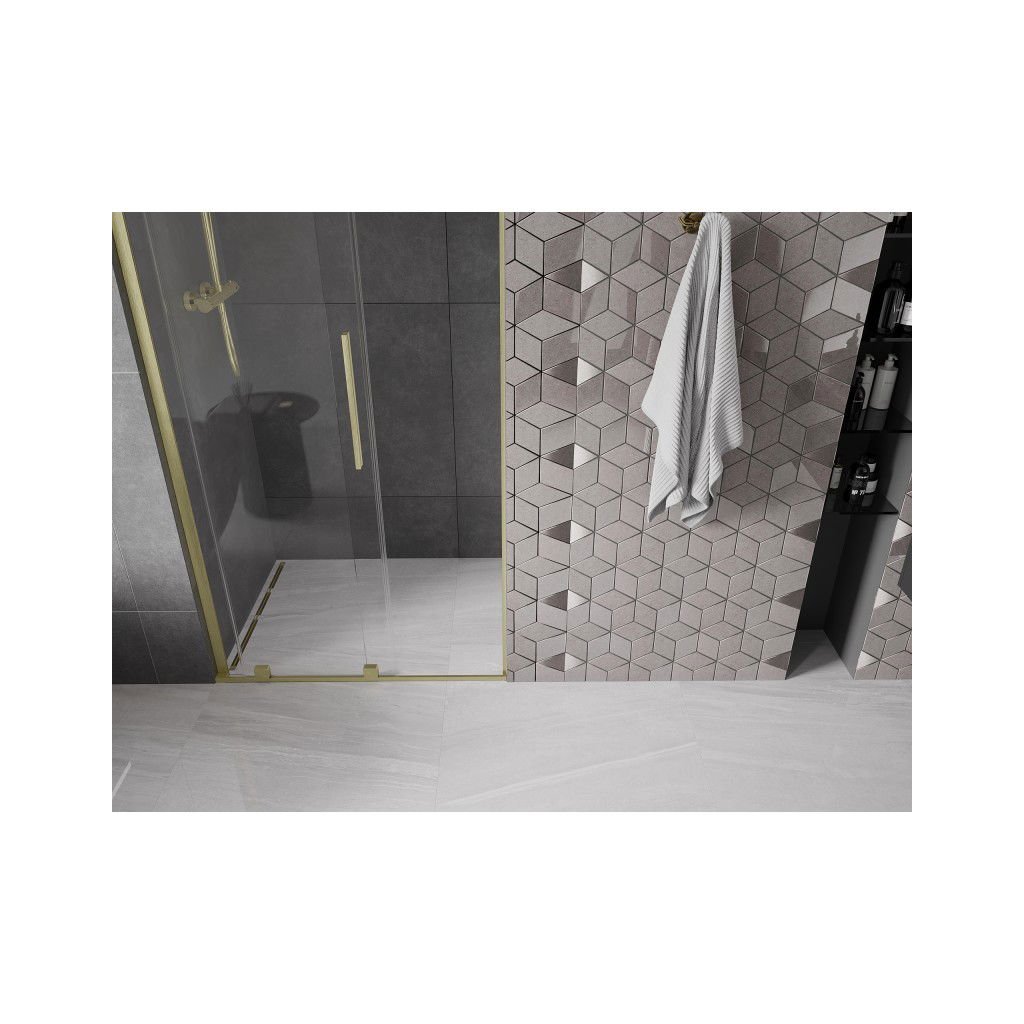 Mexen Velar L, posuvné sprchové dveře do otvoru 100 cm, 8mm čiré sklo, zlatá matná, 871-100-003-01-55