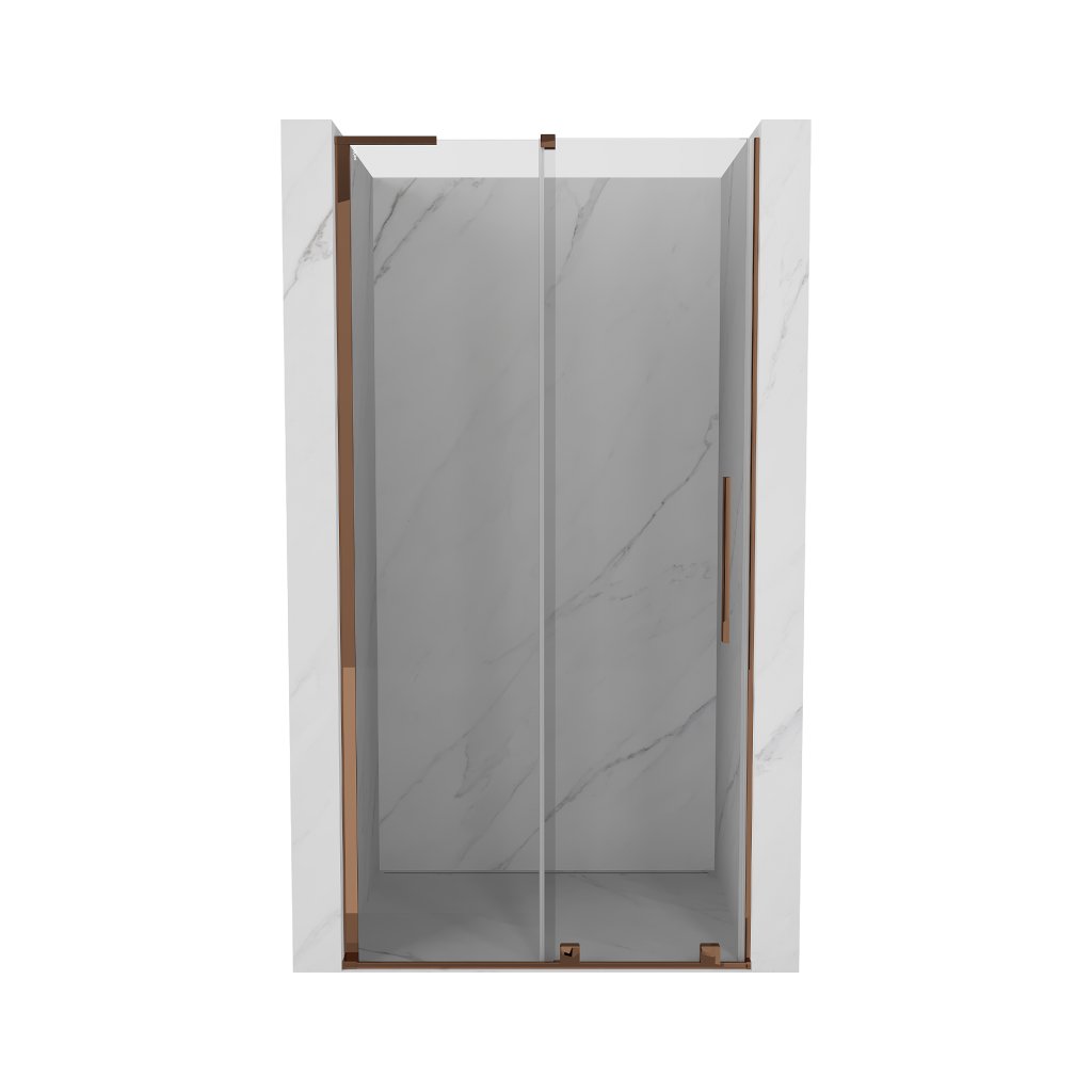 Mexen Velar L, posuvné sprchové dveře do otvoru 110 cm, 8mm čiré sklo, růžové zlato, 871-110-003-01-60