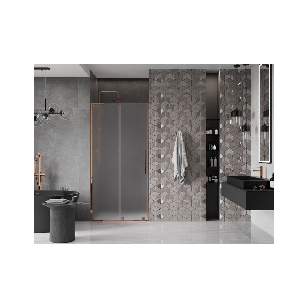 Mexen Velar L, posuvné sprchové dveře do otvoru 110 cm, 8mm sklo námraza, růžové zlato, 871-110-003-31-60