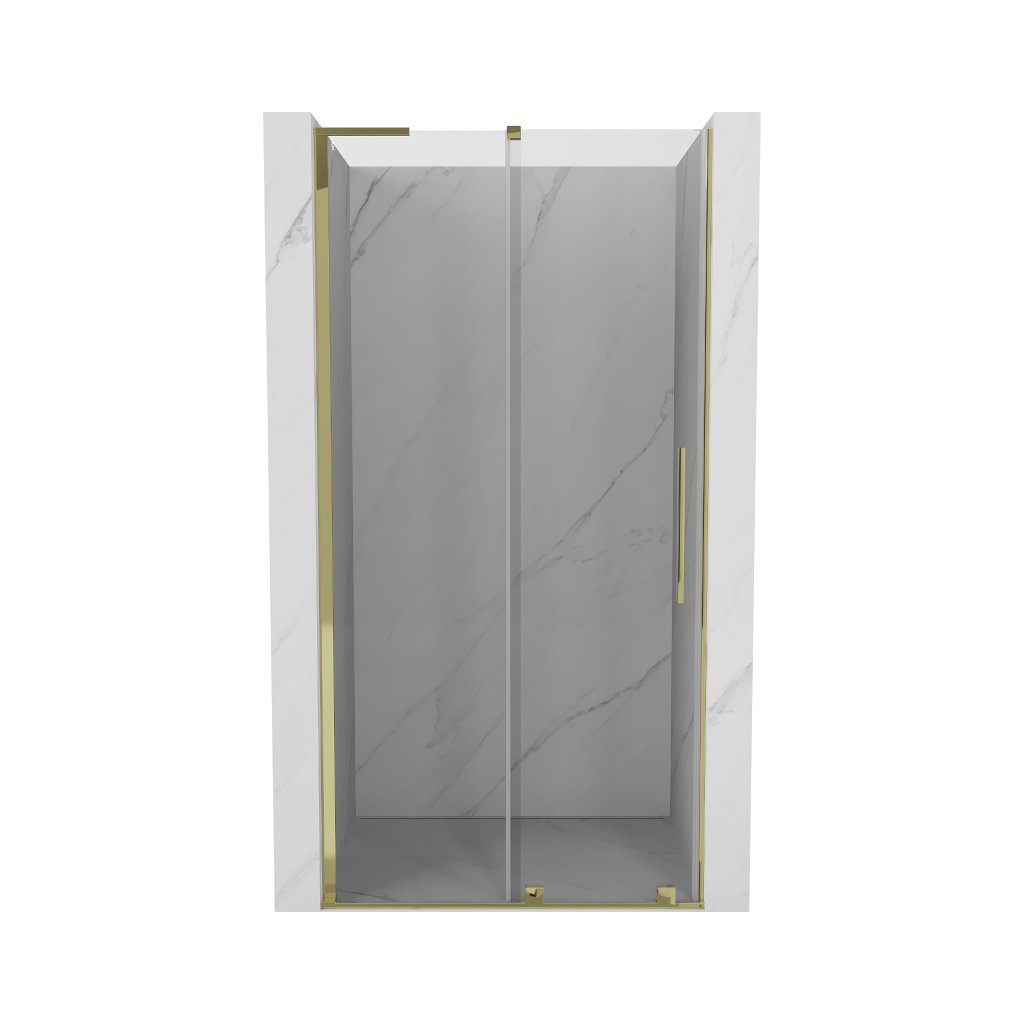 Mexen Velar L, posuvné sprchové dveře do otvoru 120 cm, 8mm čiré sklo, zlatá lesklá, 871-120-003-01-50