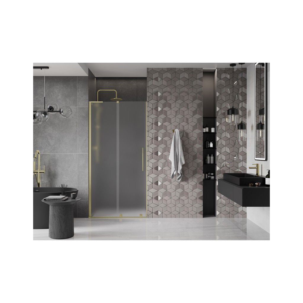 Mexen Velar L, posuvné sprchové dveře do otvoru 120 cm, 8mm sklo námraza, zlatá matná, 871-120-003-31-55