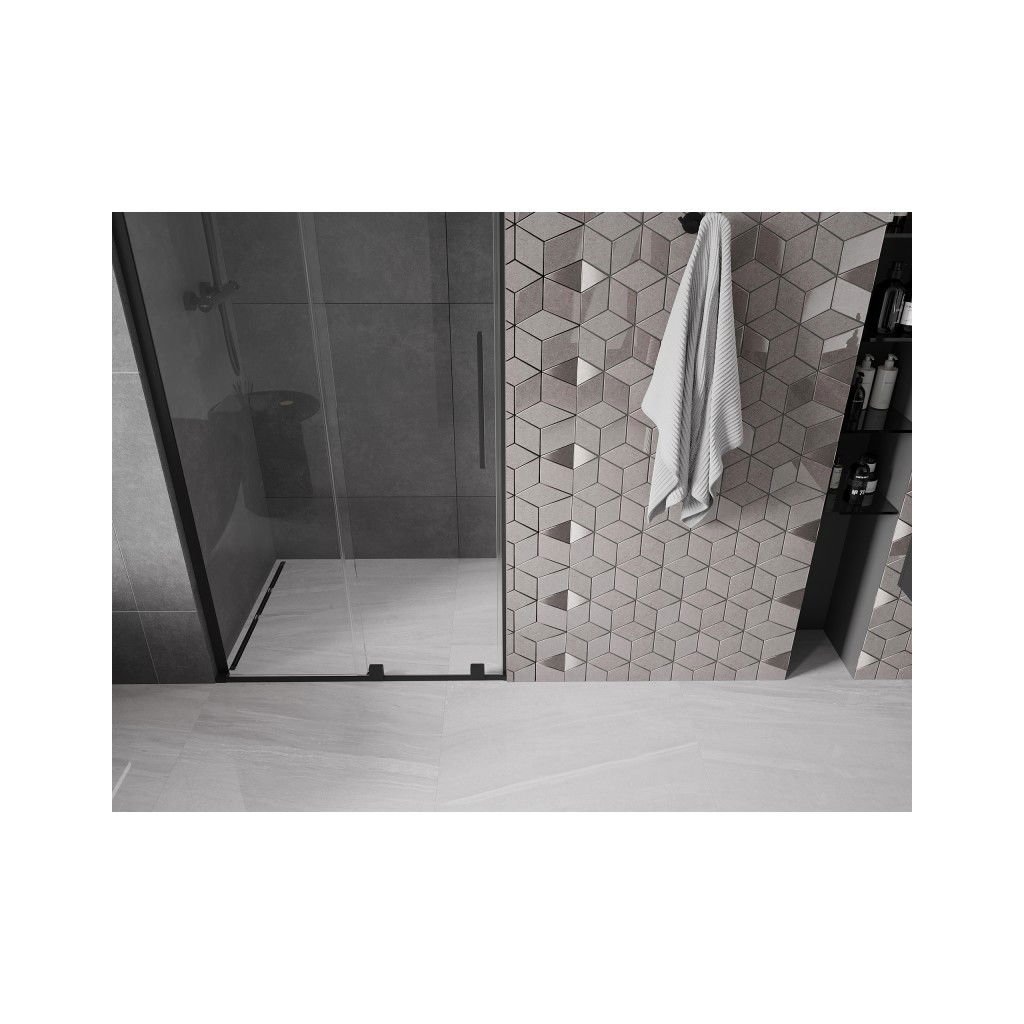 Mexen Velar L, posuvné sprchové dveře do otvoru 90 cm, 8mm čiré sklo, černá matná, 871-090-003-01-70