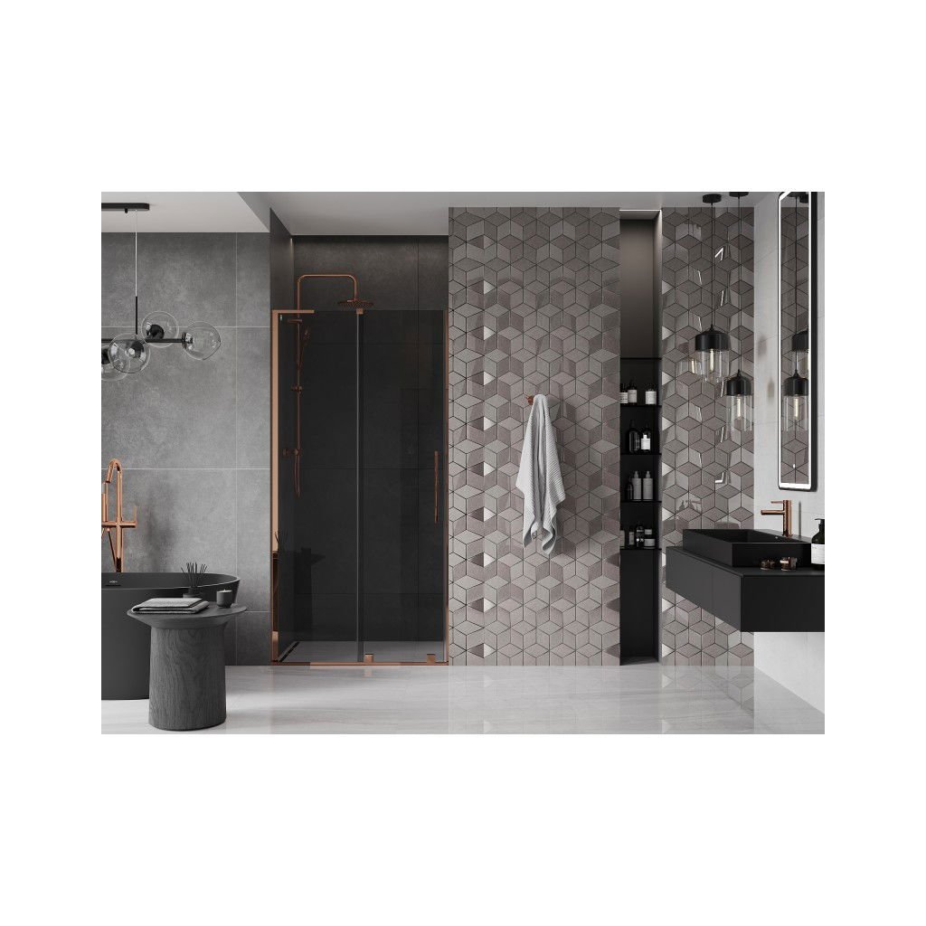 Mexen Velar L, posuvné sprchové dveře do otvoru 90 cm, 8mm šedé sklo, růžové zlato, 871-090-003-41-60