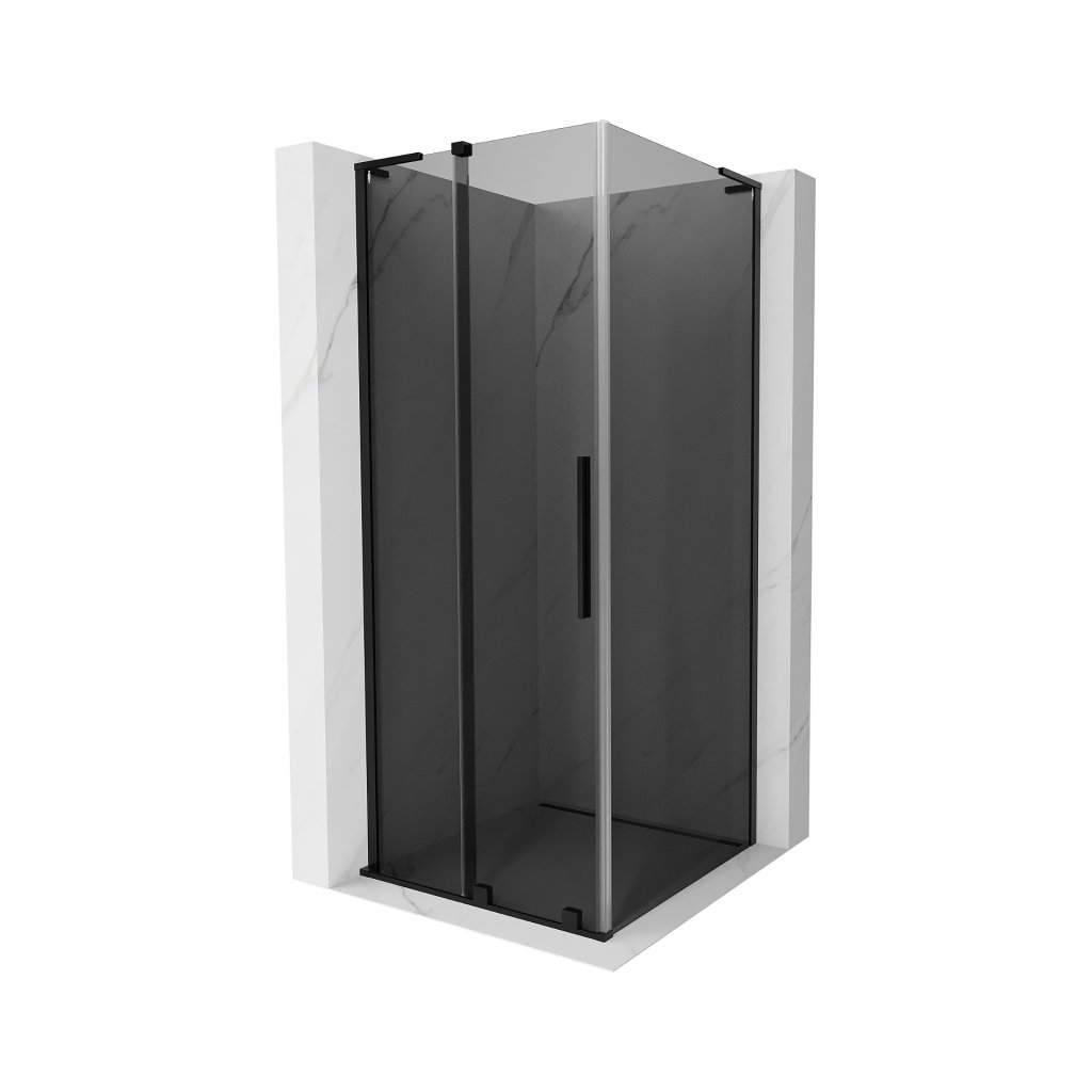 Mexen Velar L, sprchový kout s posuvnými dveřmi 100 x 100 cm, 8mm šedé sklo, černá matná, 871-100-100-43-70