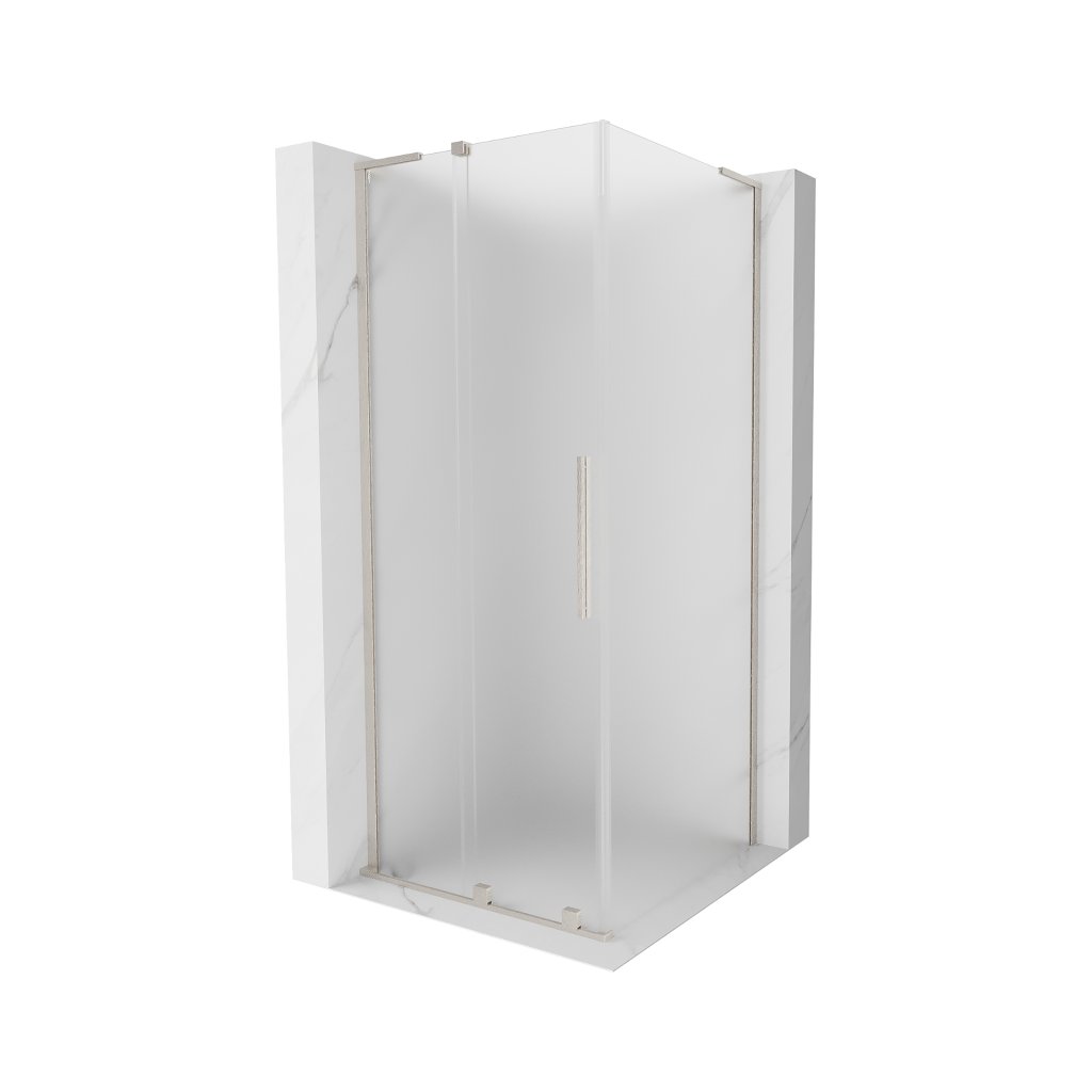 Mexen Velar L, sprchový kout s posuvnými dveřmi 100 x 100 cm, 8mm sklo námraza, broušená ocel, 871-100-100-33-97