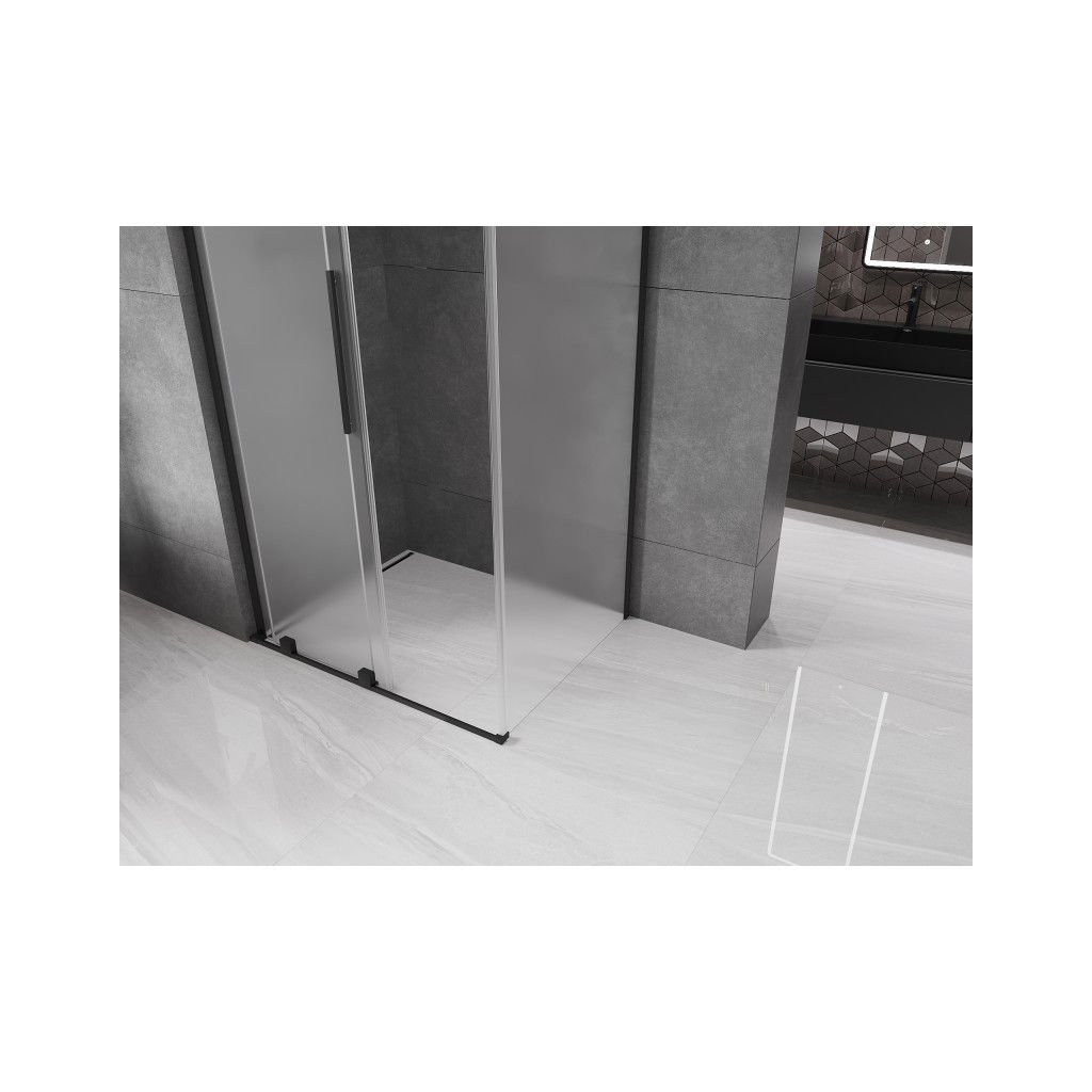 Mexen Velar L, sprchový kout s posuvnými dveřmi 90 x 80 cm, 8mm sklo námraza, černá matná, 871-090-080-33-70