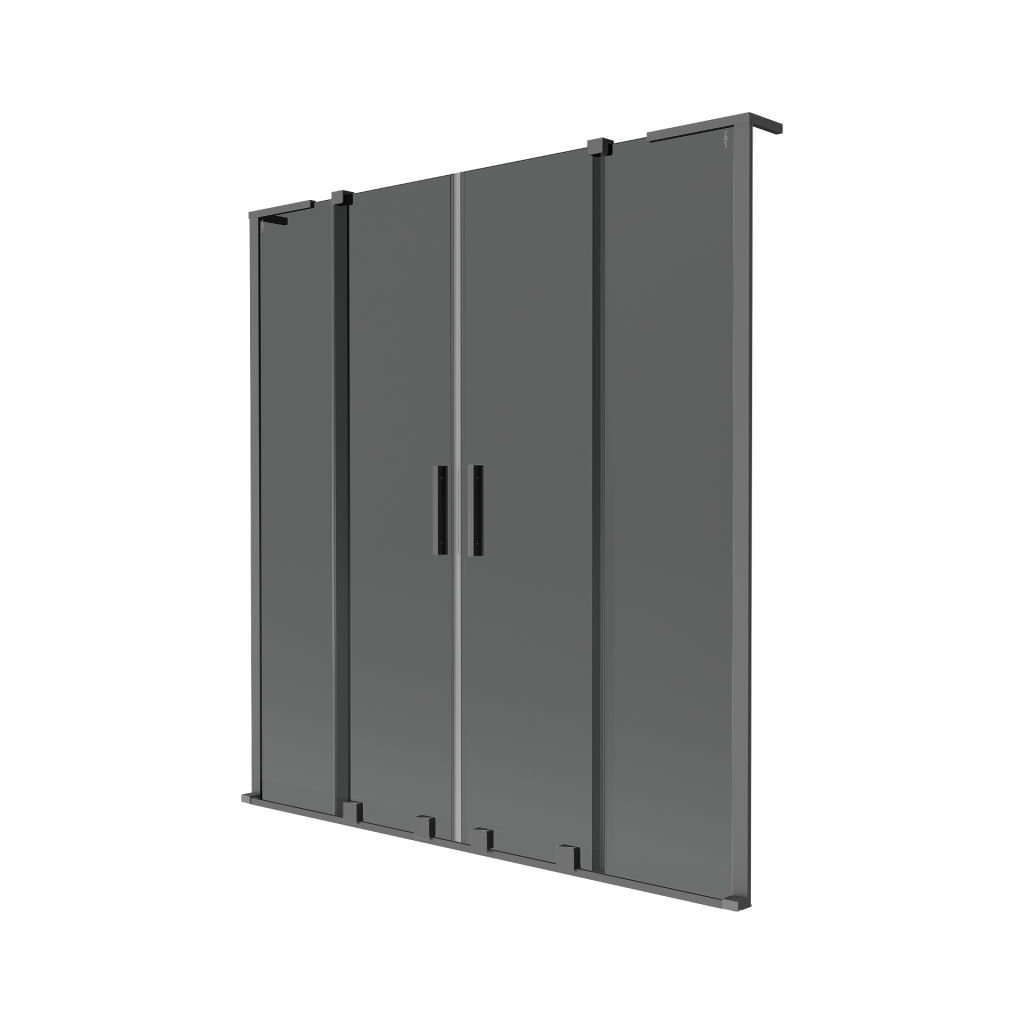 Mexen Velar L Duo, 2-křídlová posuvná vanová zástěna 140 x 150 cm, 8mm šedé sklo, grafitová, 896-140-003-42-95