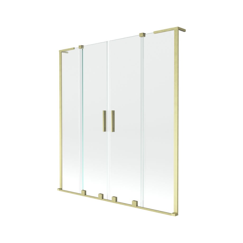 Mexen Velar L Duo, 2-křídlová posuvná vanová zástěna 150 x 150 cm, 8mm čiré sklo, zlatá matná, 896-150-003-02-55