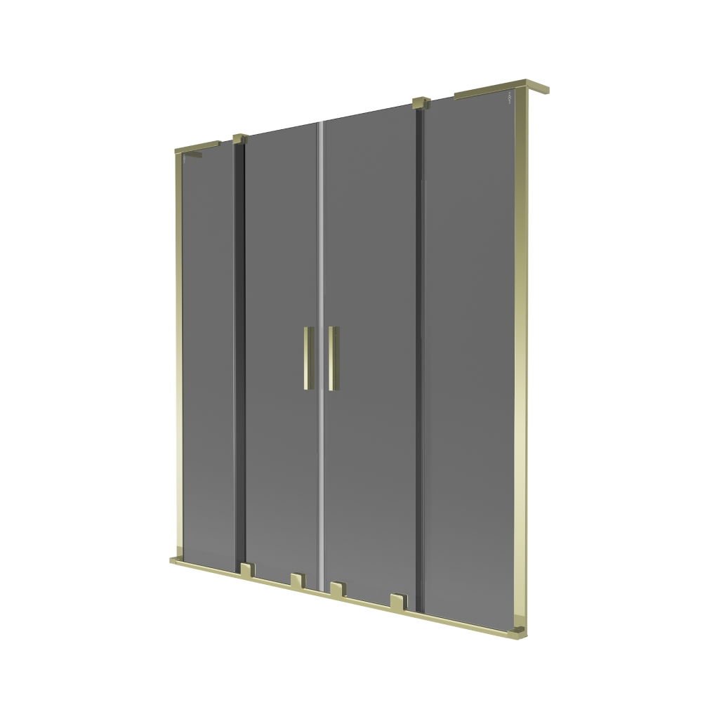 Mexen Velar L Duo, 2-křídlová posuvná vanová zástěna 150 x 150 cm, 8mm šedé sklo, zlatá lesklá, 896-150-003-42-50