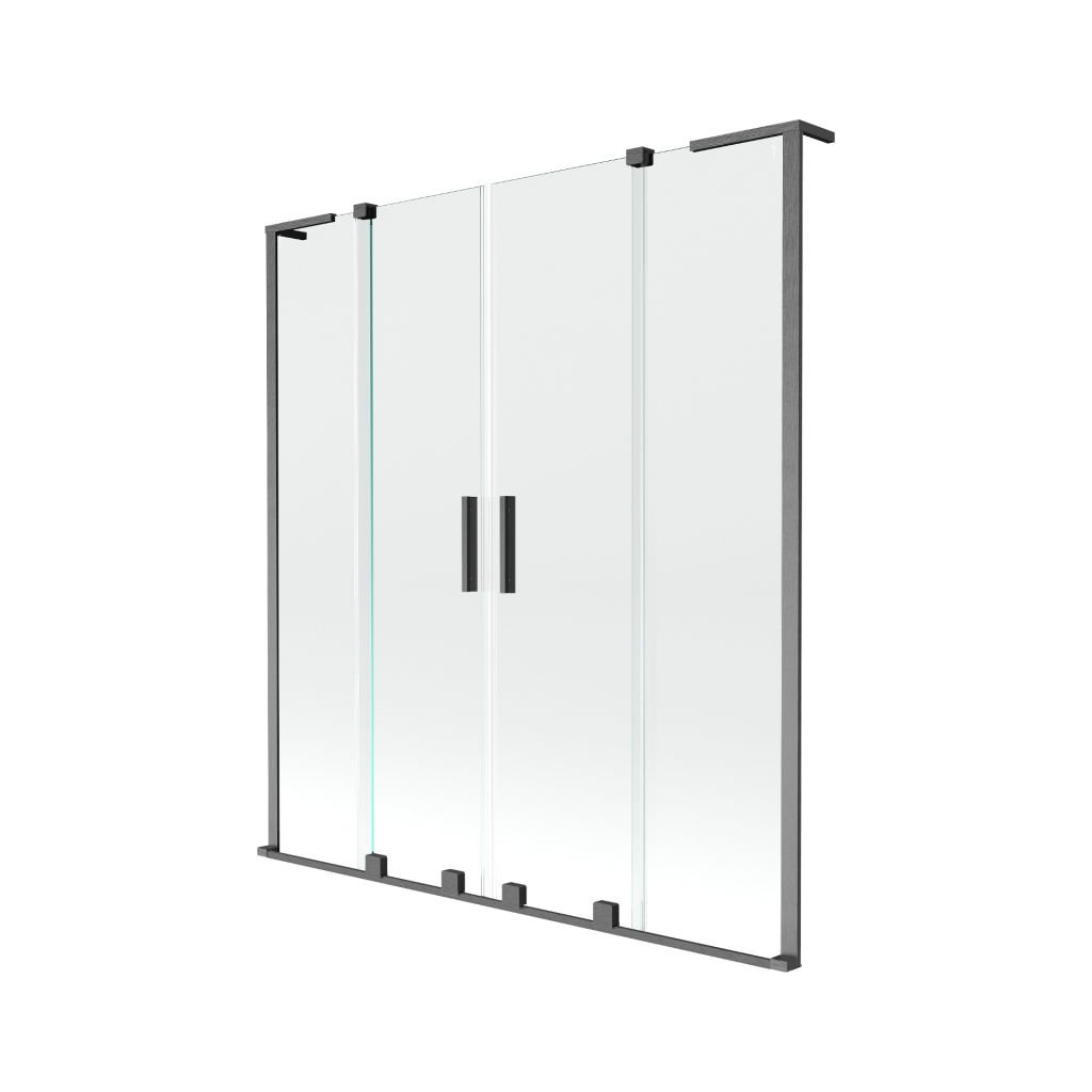 Mexen Velar L Duo, 2-křídlová posuvná vanová zástěna 160 x 150 cm, 8mm čiré sklo, broušený grafit, 896-160-003-02-66