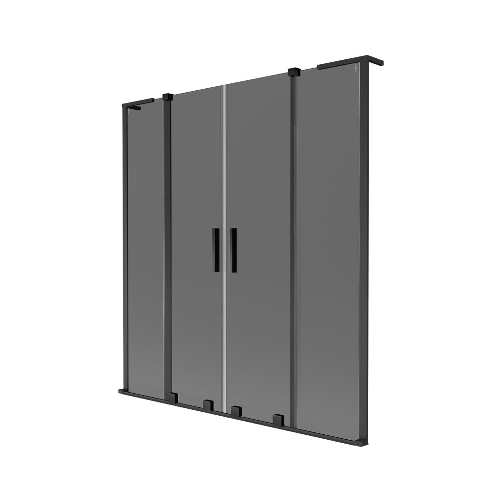 Mexen Velar L Duo, 2-křídlová posuvná vanová zástěna 160 x 150 cm, 8mm šedé sklo, černá matná, 896-160-003-42-70