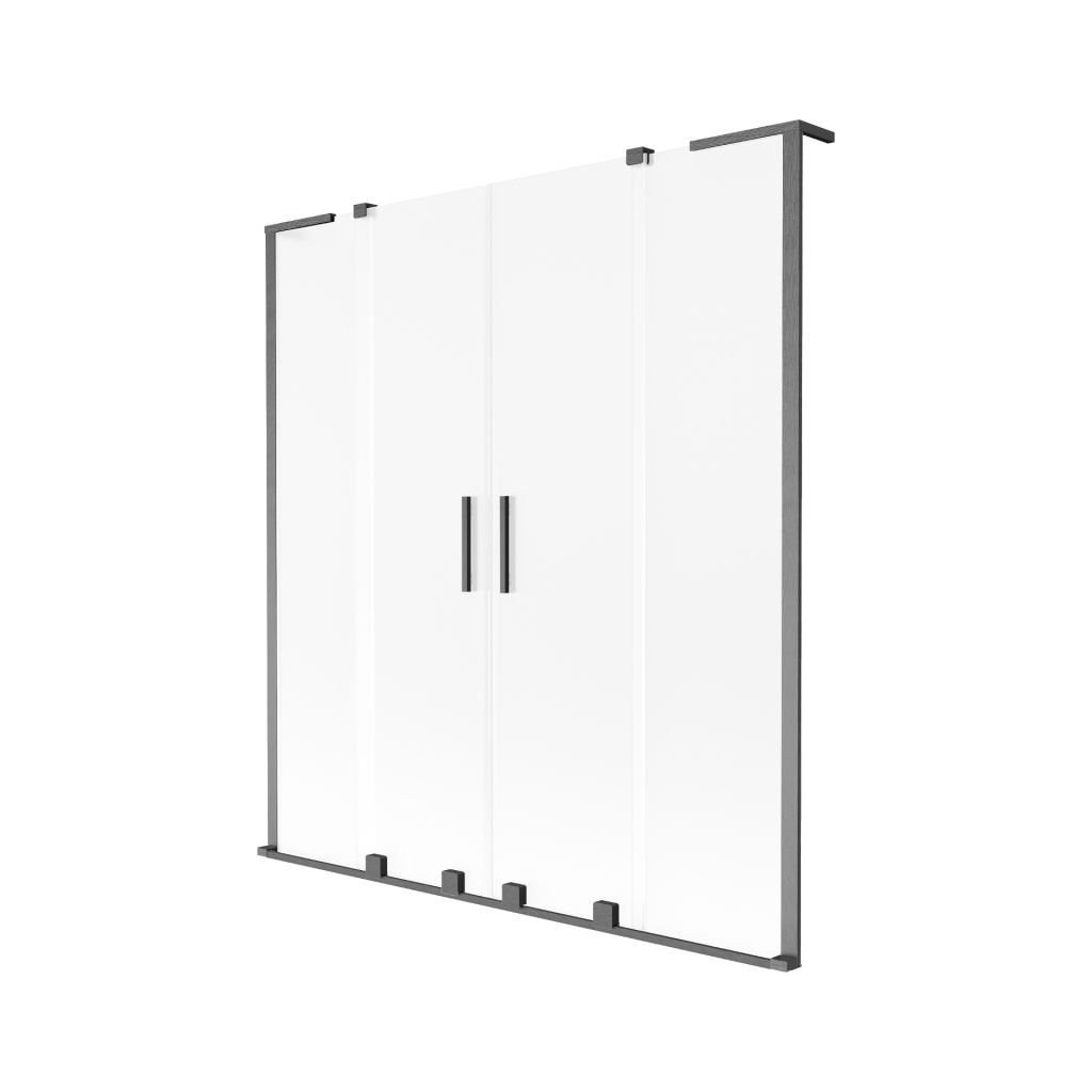 Mexen Velar L Duo, 2-křídlová posuvná vanová zástěna 160 x 150 cm, 8mm sklo námraza, broušený grafit, 896-160-003-32-66