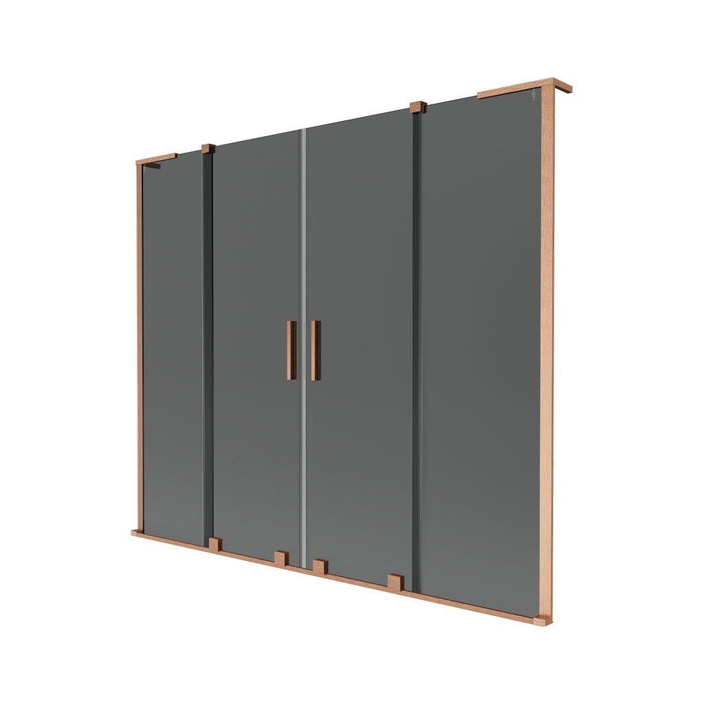 Mexen Velar L Duo, 2-křídlová posuvná vanová zástěna 200 x 150 cm, 8mm šedé sklo, měděná matná, 896-200-003-42-65