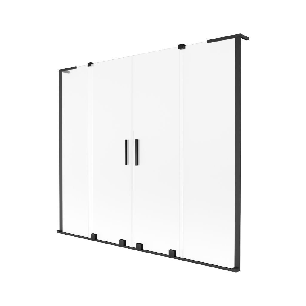 Mexen Velar L Duo, 2-křídlová posuvná vanová zástěna 200 x 150 cm, 8mm sklo námraza, černá matná, 896-200-003-32-70