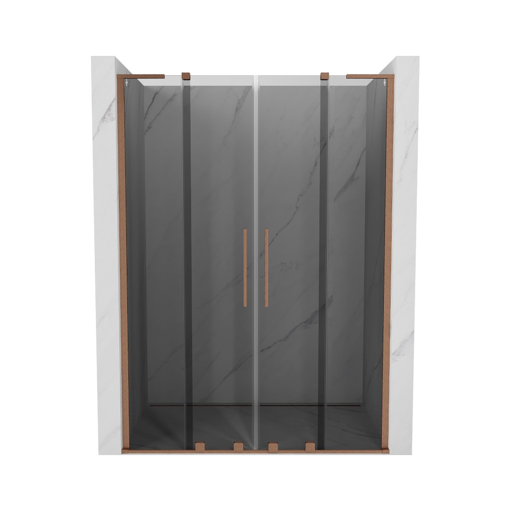 Mexen Velar L Duo, posuvné sprchové dveře do otvoru 140 cm, 8mm šedé sklo, měděná matná, 871-140-003-42-65
