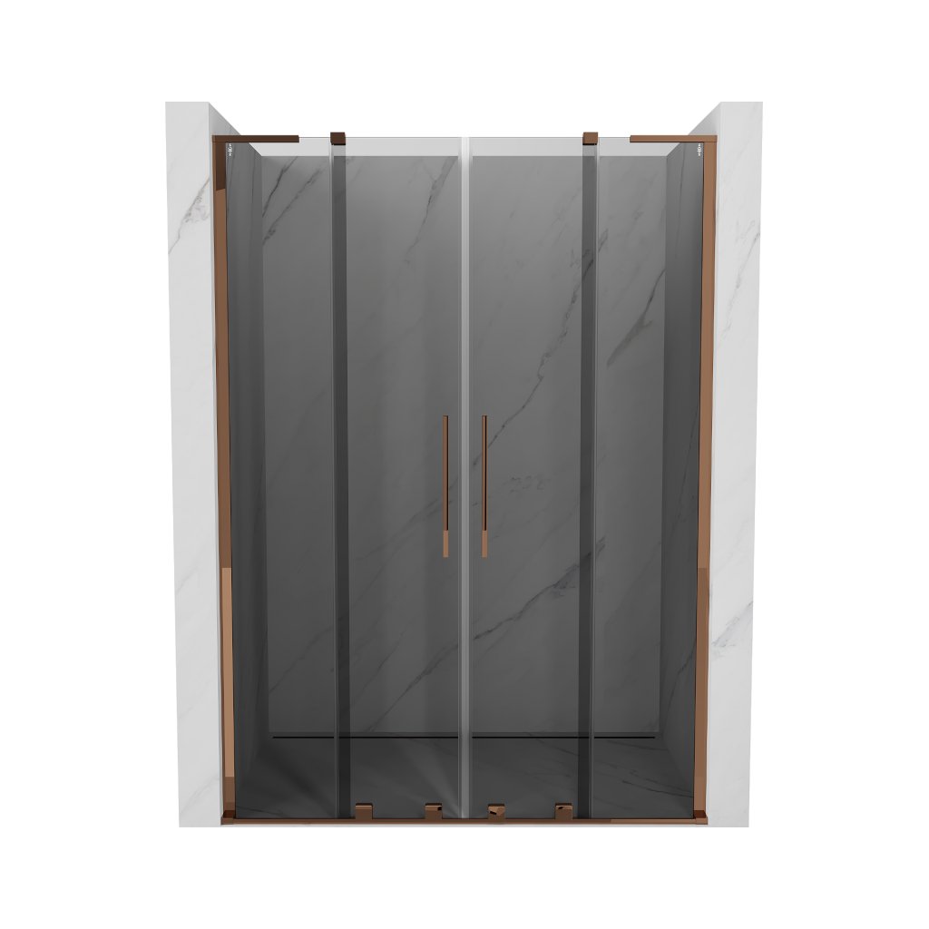 Mexen Velar L Duo, posuvné sprchové dveře do otvoru 140 cm, 8mm šedé sklo, růžové zlato, 871-140-003-42-60