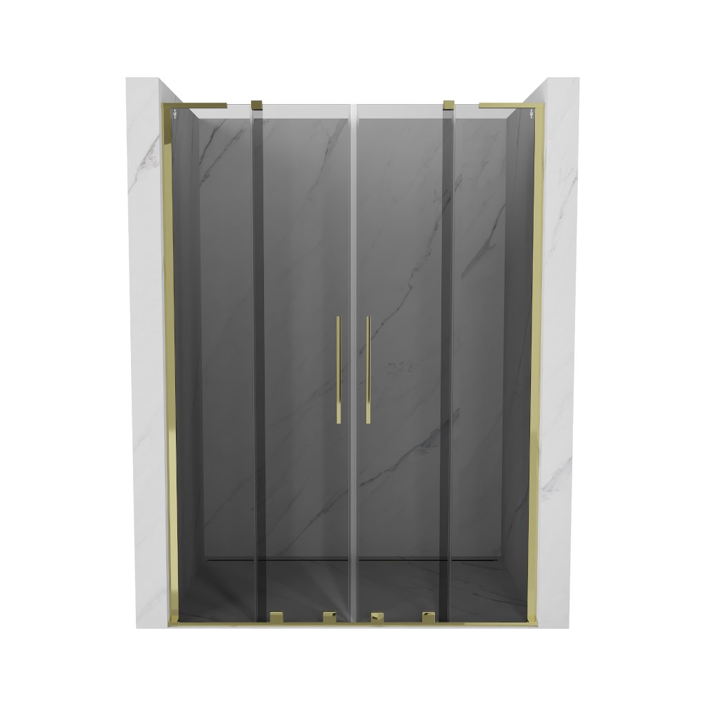 Mexen Velar L Duo, posuvné sprchové dveře do otvoru 140 cm, 8mm šedé sklo, zlatá lesklá, 871-140-003-42-50