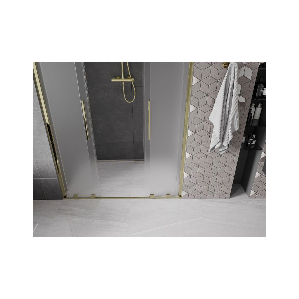 Mexen Velar L Duo, posuvné sprchové dveře do otvoru 140 cm, 8mm sklo námraza, zlatá lesklá, 871-140-003-32-50
