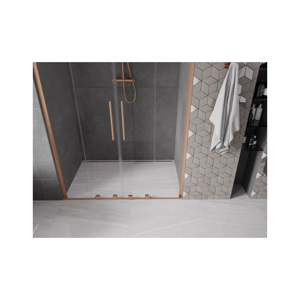Mexen Velar L Duo, posuvné sprchové dveře do otvoru 150 cm, 8mm čiré sklo, měděná matná, 871-150-003-02-65