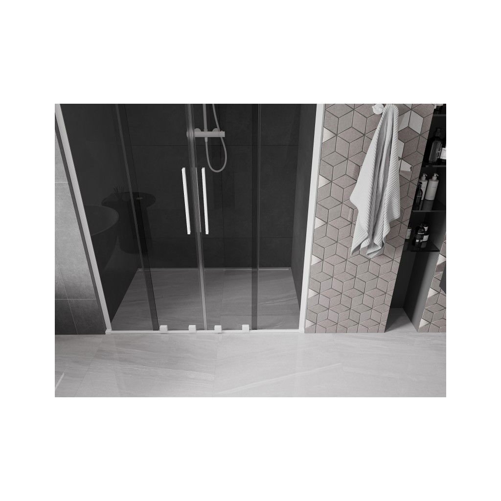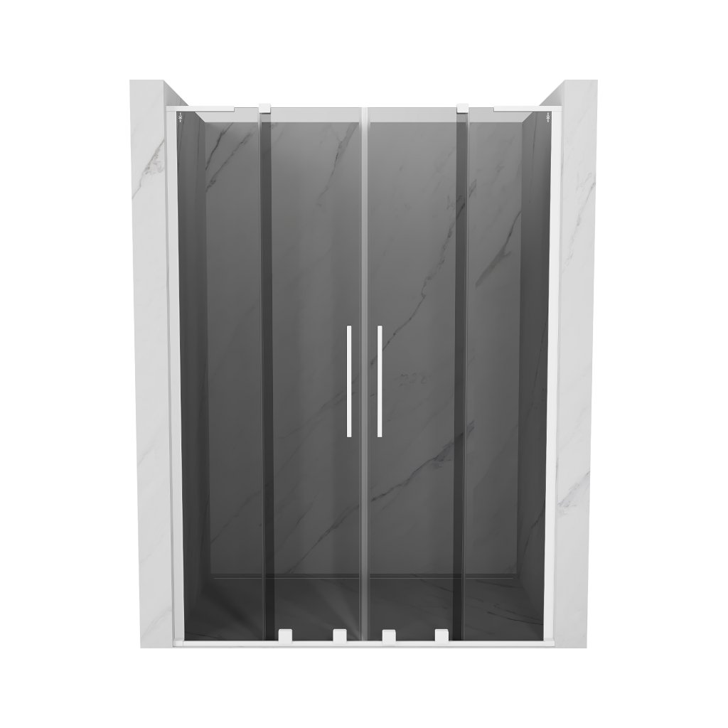 Mexen Velar L Duo, posuvné sprchové dveře do otvoru 150 cm, 8mm šedé sklo, bílá matná, 871-150-003-42-20