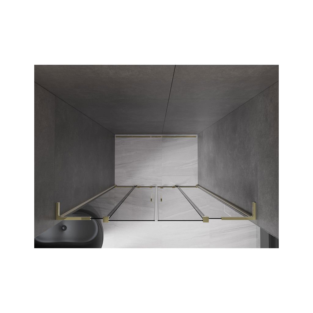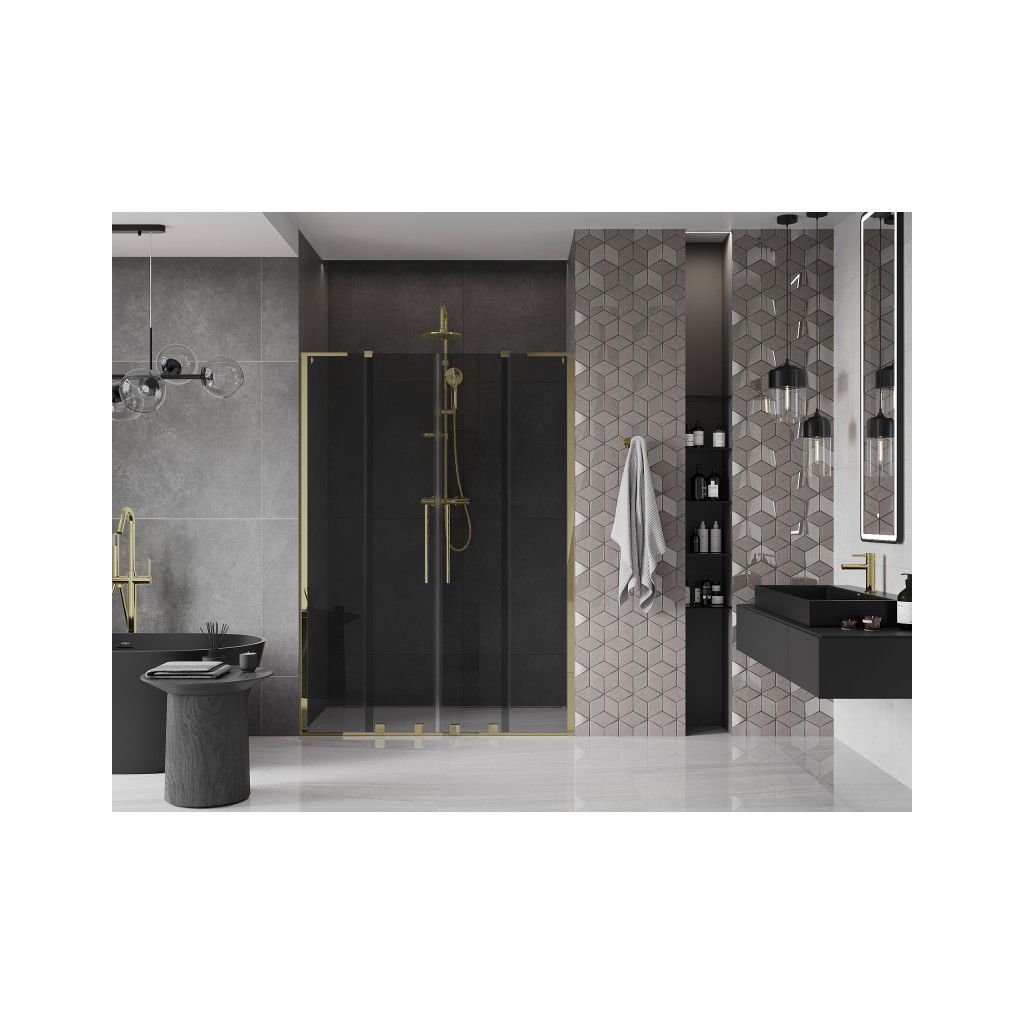 Mexen Velar L Duo, posuvné sprchové dveře do otvoru 150 cm, 8mm šedé sklo, zlatá lesklá, 871-150-003-42-50