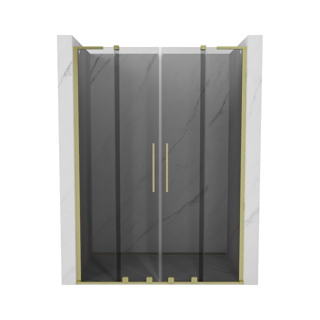 Mexen Velar L Duo, posuvné sprchové dveře do otvoru 150 cm, 8mm šedé sklo, zlatá matná, 871-150-003-42-55