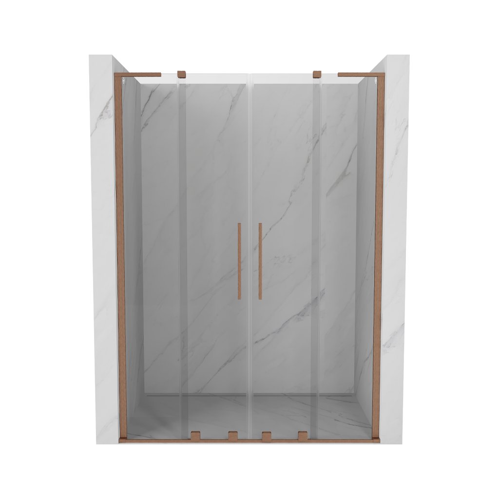 Mexen Velar L Duo, posuvné sprchové dveře do otvoru 160 cm, 8mm čiré sklo, měděná matná, 871-160-003-02-65