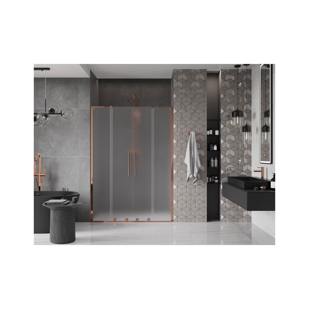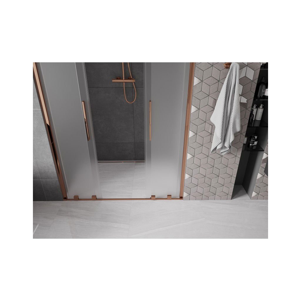 Mexen Velar L Duo, posuvné sprchové dveře do otvoru 160 cm, 8mm sklo námraza, růžové zlato, 871-160-003-32-60