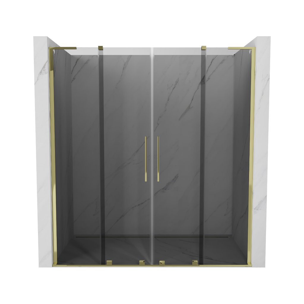 Mexen Velar L Duo, posuvné sprchové dveře do otvoru 170 cm, 8mm šedé sklo, zlatá lesklá, 871-170-003-42-50