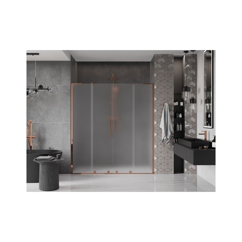 Mexen Velar L Duo, posuvné sprchové dveře do otvoru 170 cm, 8mm sklo námraza, růžové zlato, 871-170-003-32-60