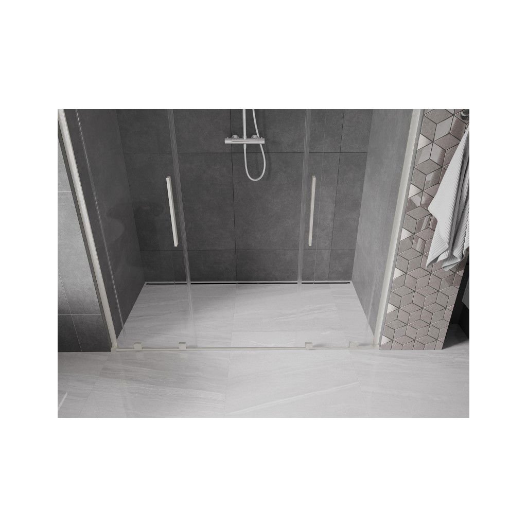 Mexen Velar L Duo, posuvné sprchové dveře do otvoru 180 cm, 8mm čiré sklo, broušená ocel, 871-180-003-02-97