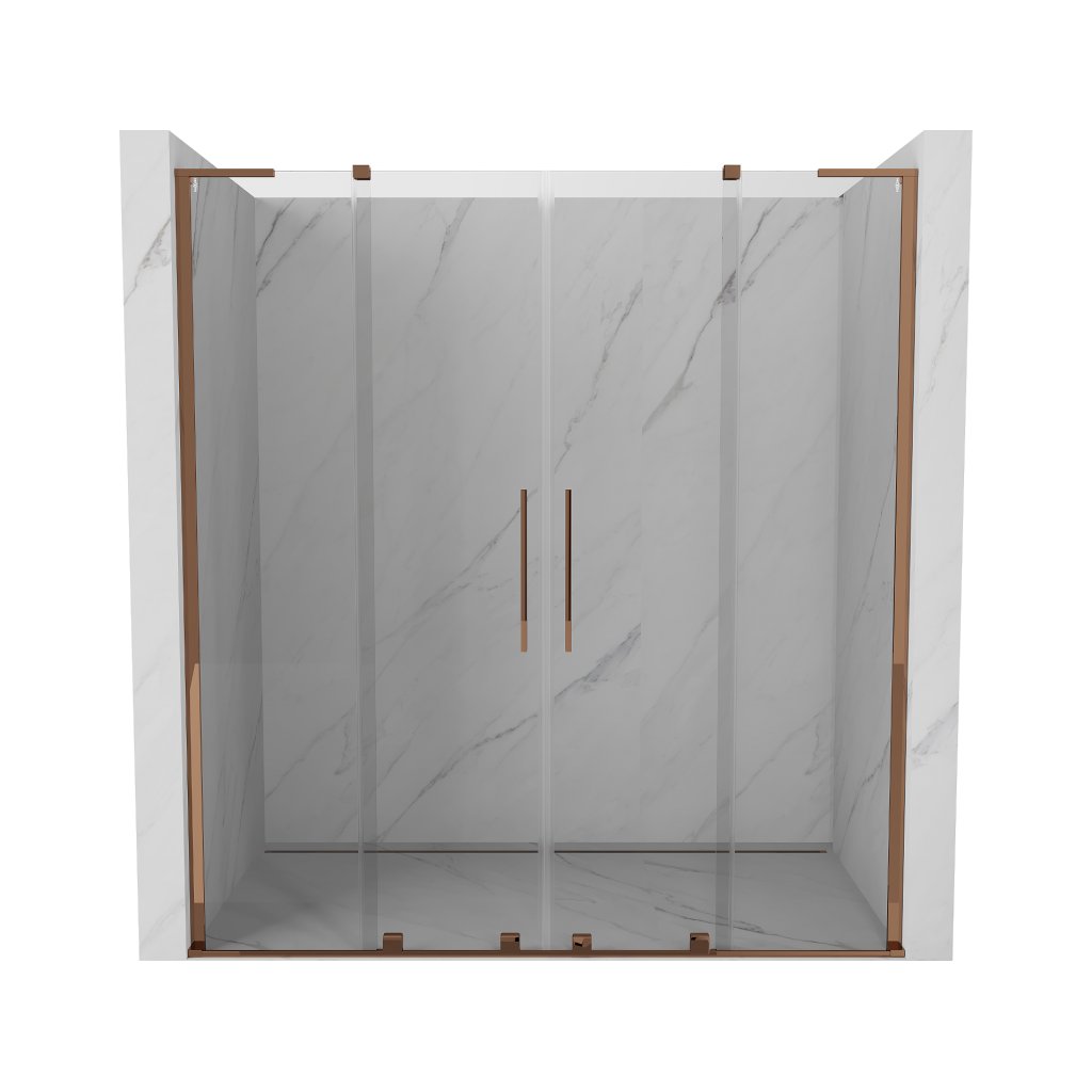 Mexen Velar L Duo, posuvné sprchové dveře do otvoru 180 cm, 8mm čiré sklo, růžové zlato, 871-180-003-02-60
