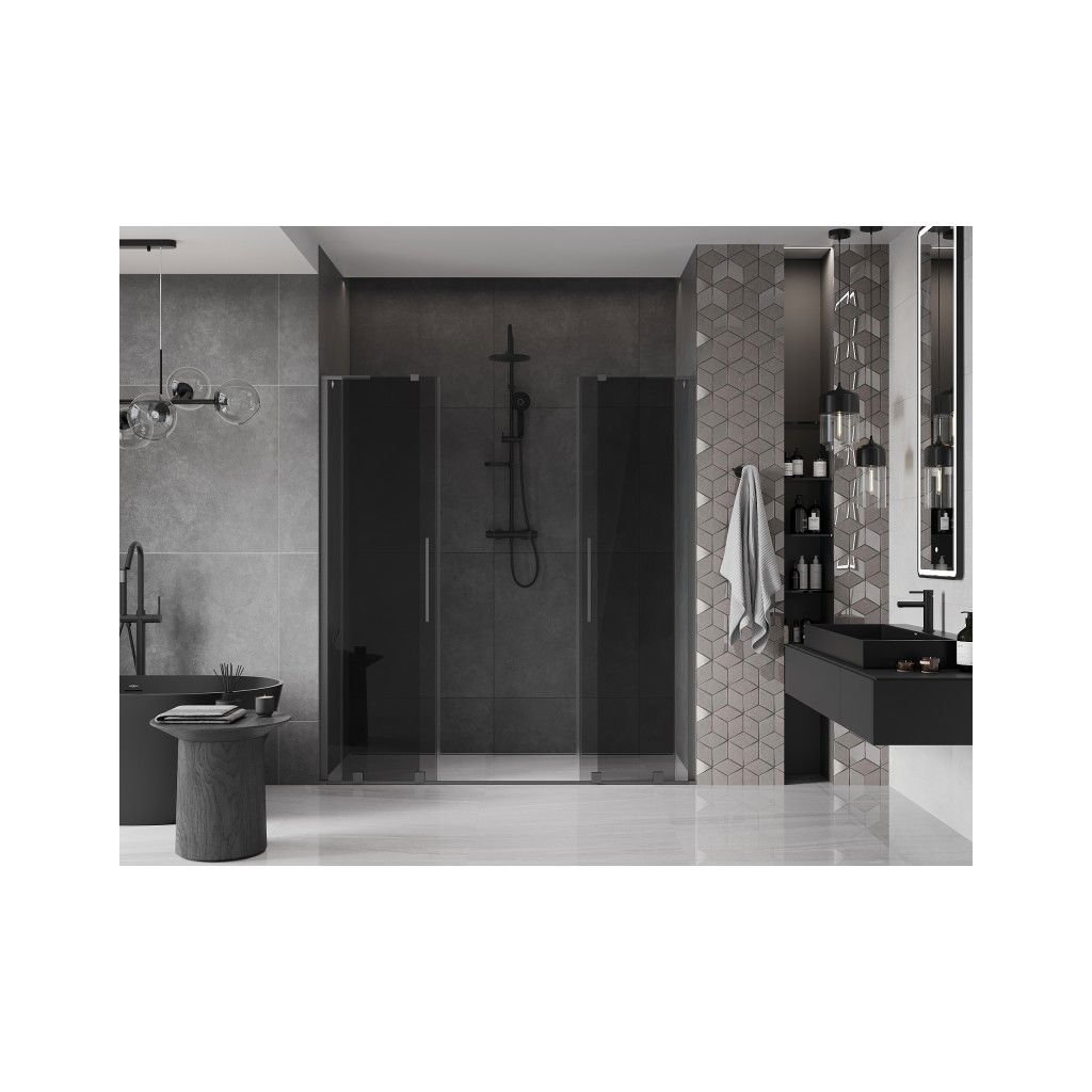 Mexen Velar L Duo, posuvné sprchové dveře do otvoru 180 cm, 8mm šedé sklo, broušený grafit, 871-180-003-42-95