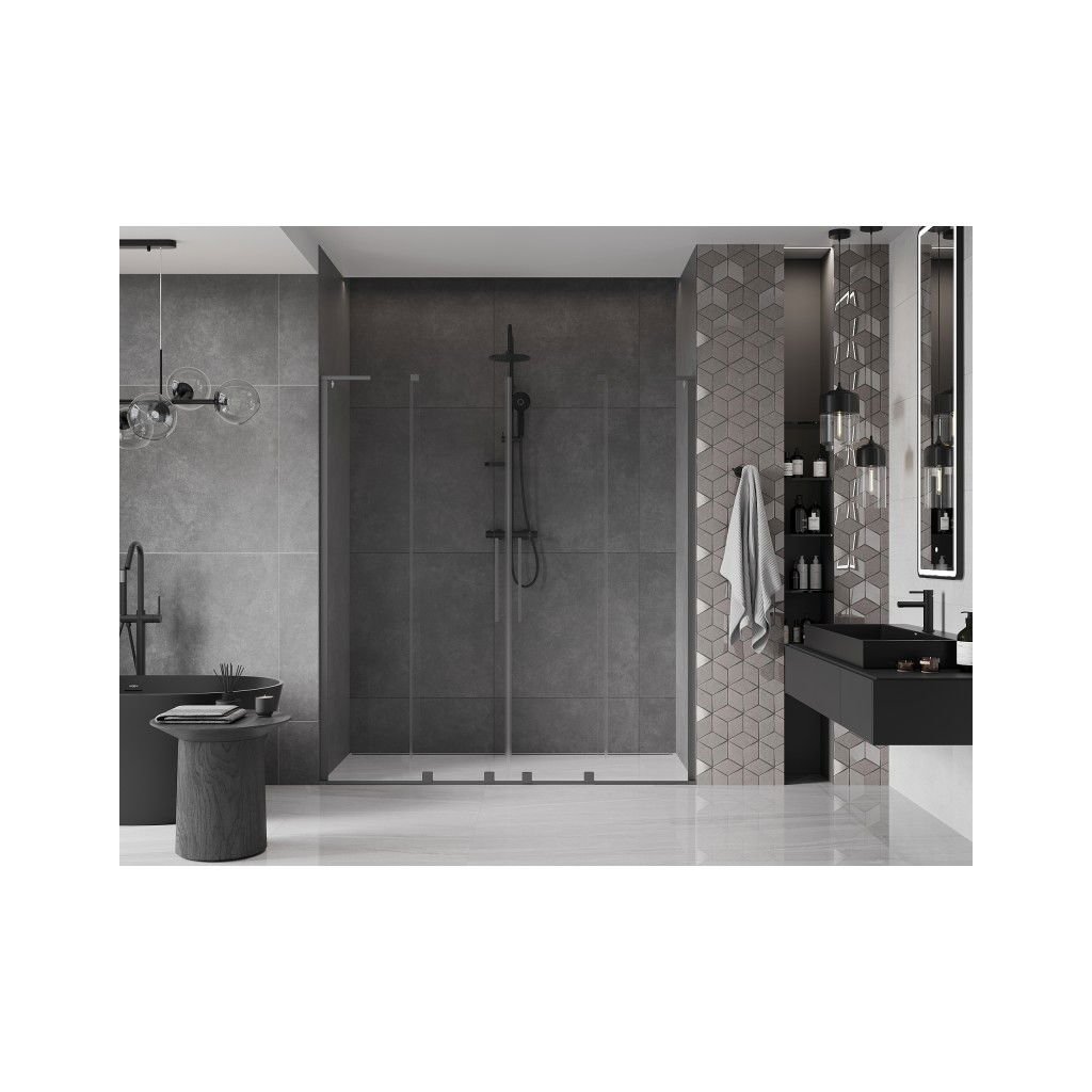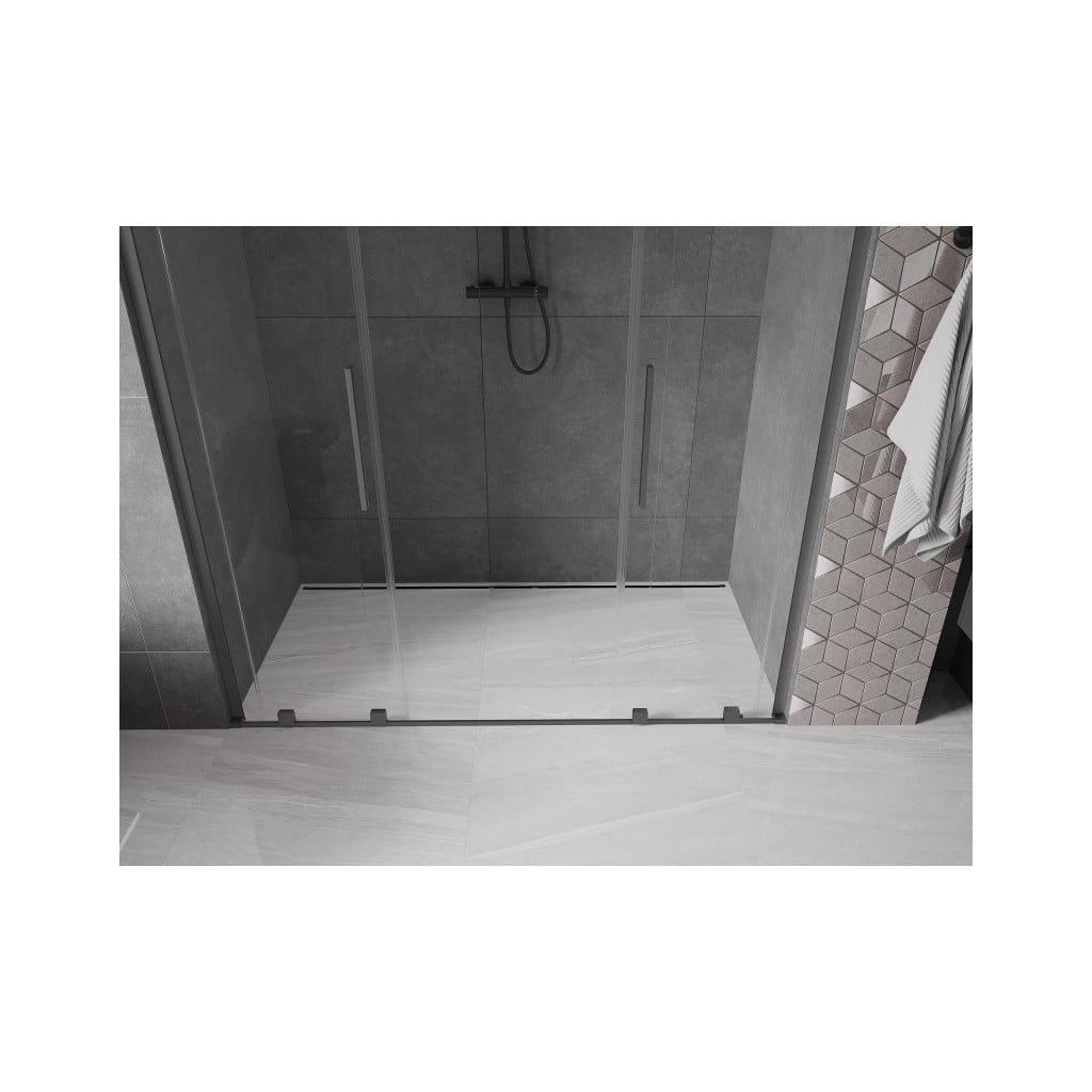 Mexen Velar L Duo, posuvné sprchové dveře do otvoru 200 cm, 8mm čiré sklo, broušený grafit, 871-200-003-02-95