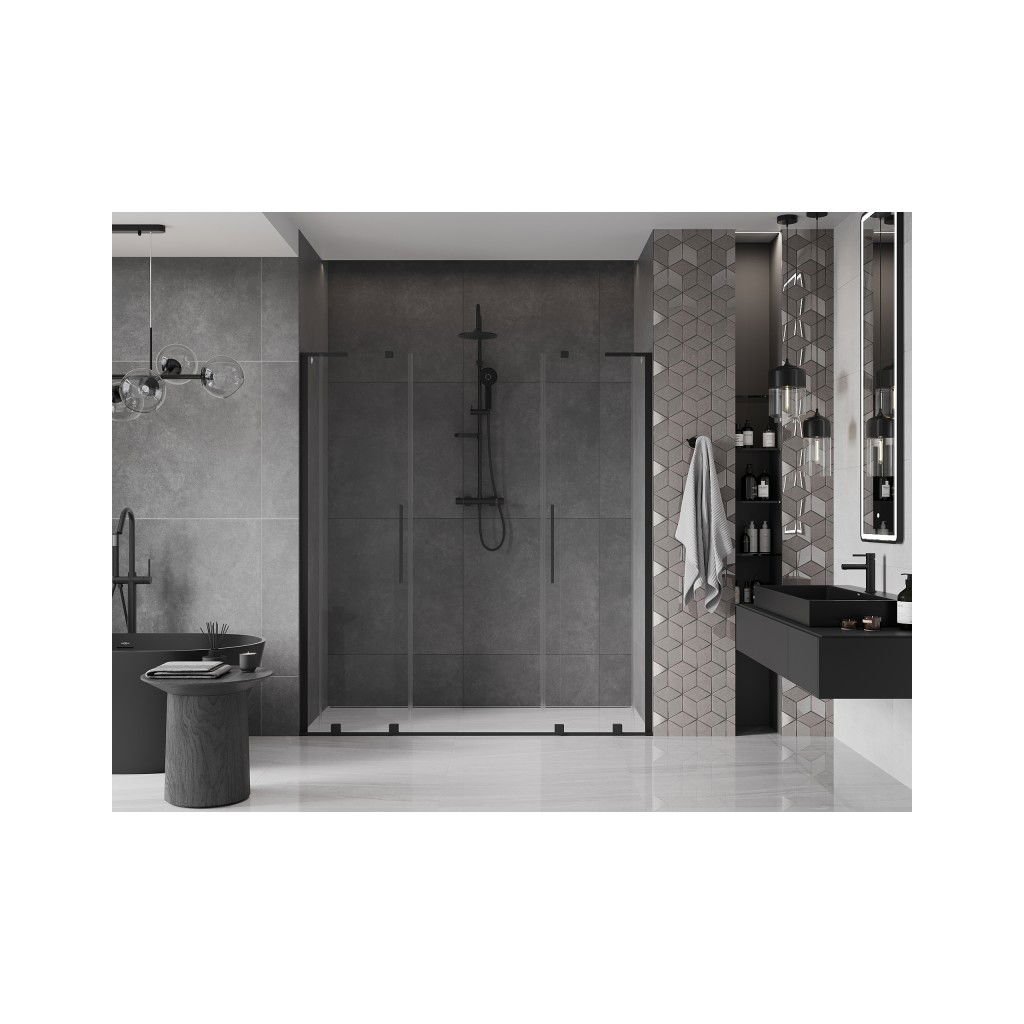 Mexen Velar L Duo, posuvné sprchové dveře do otvoru 200 cm, 8mm čiré sklo, černá matná, 871-200-003-02-70