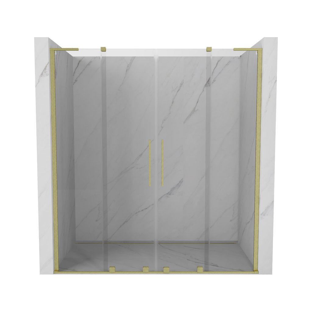 Mexen Velar L Duo, posuvné sprchové dveře do otvoru 200 cm, 8mm čiré sklo, zlatá matná, 871-200-003-02-55