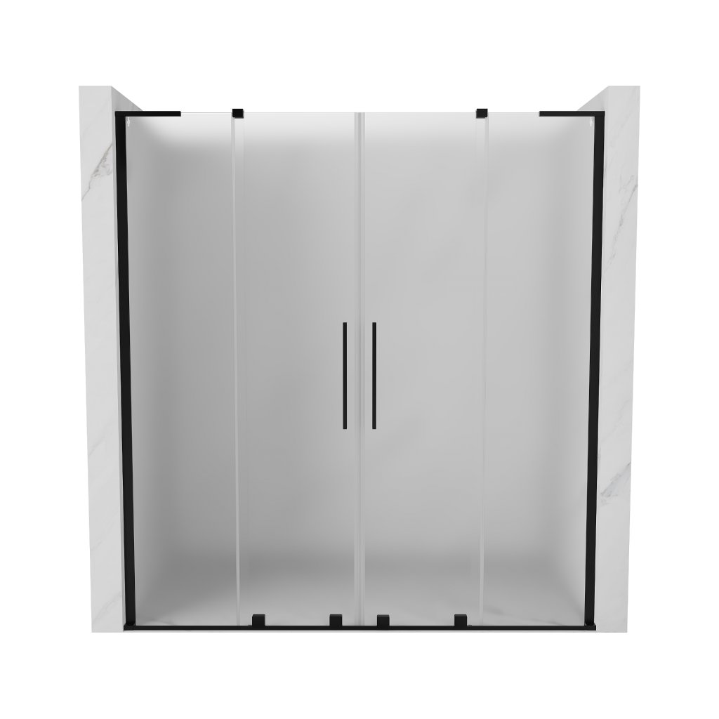 Mexen Velar L Duo, posuvné sprchové dveře do otvoru 200 cm, 8mm sklo námraza, černá matná, 871-200-003-32-70
