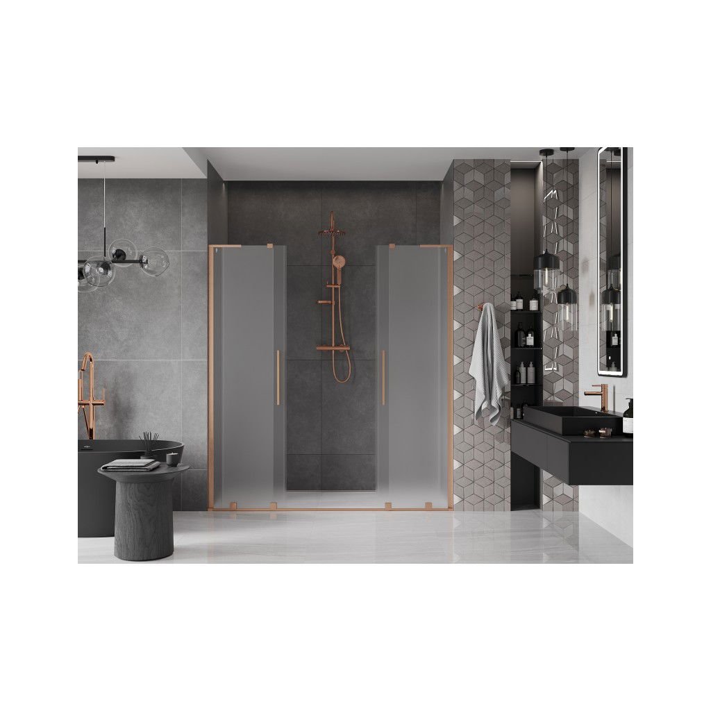 Mexen Velar L Duo, posuvné sprchové dveře do otvoru 200 cm, 8mm sklo námraza, měděná matná, 871-200-003-32-65