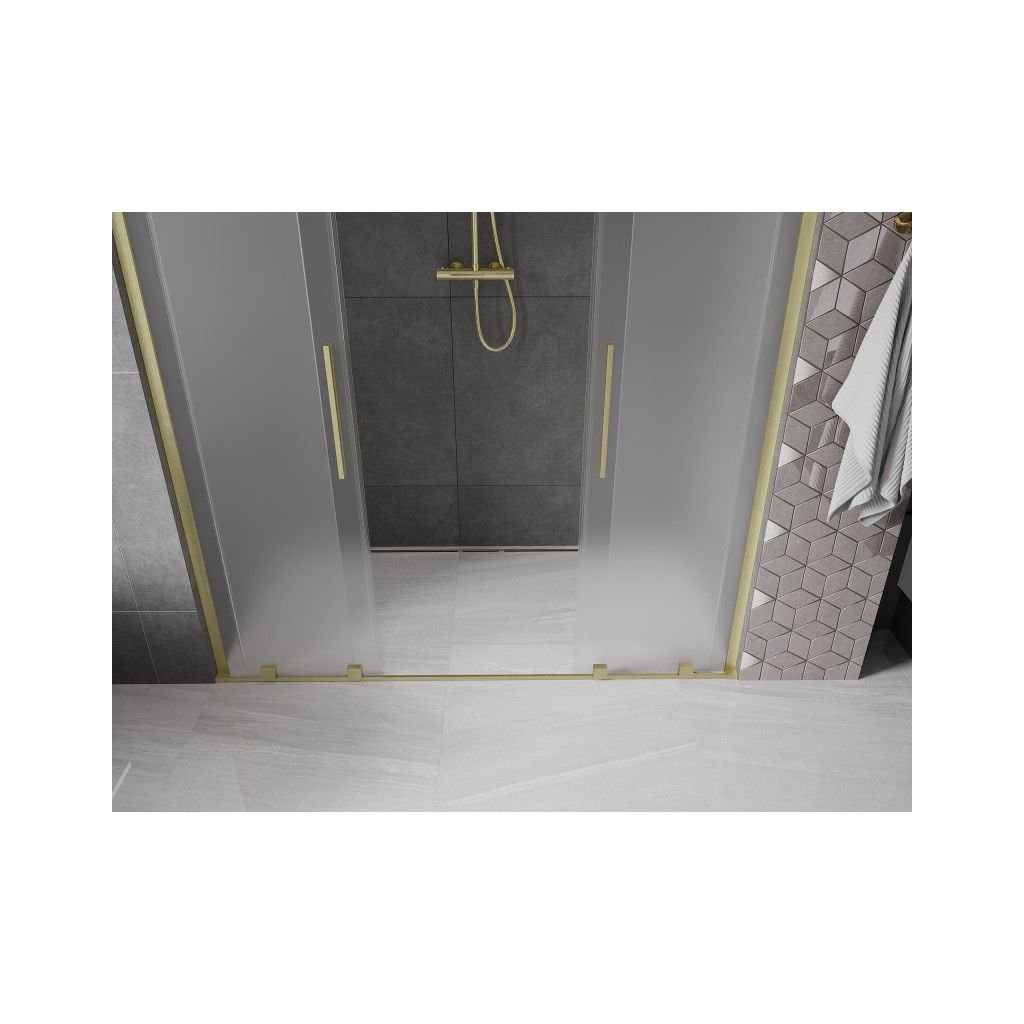 Mexen Velar L Duo, posuvné sprchové dveře do otvoru 200 cm, 8mm sklo námraza, zlatá matná, 871-200-003-32-55