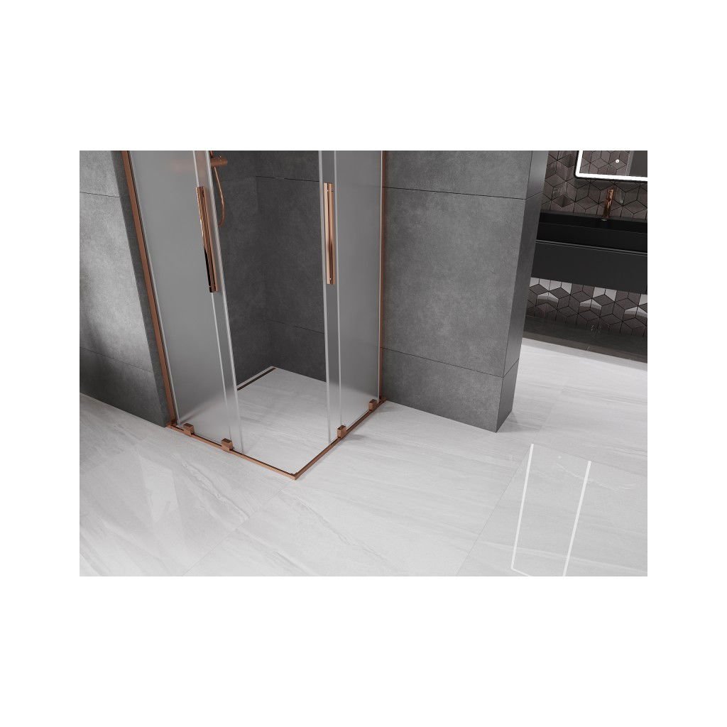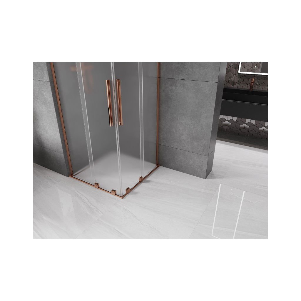 Mexen Velar L Duo, sprchový kout s posuvnými dveřmi 100 x 100 cm, 8mm sklo námraza, růžové zlato, 871-100-100-02-33-60