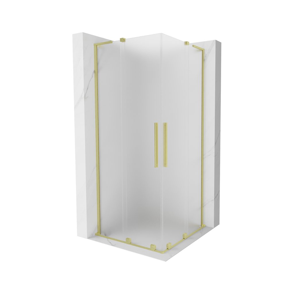 Mexen Velar L Duo, sprchový kout s posuvnými dveřmi 100 x 100 cm, 8mm sklo námraza, zlatá matná, 871-100-100-02-33-55