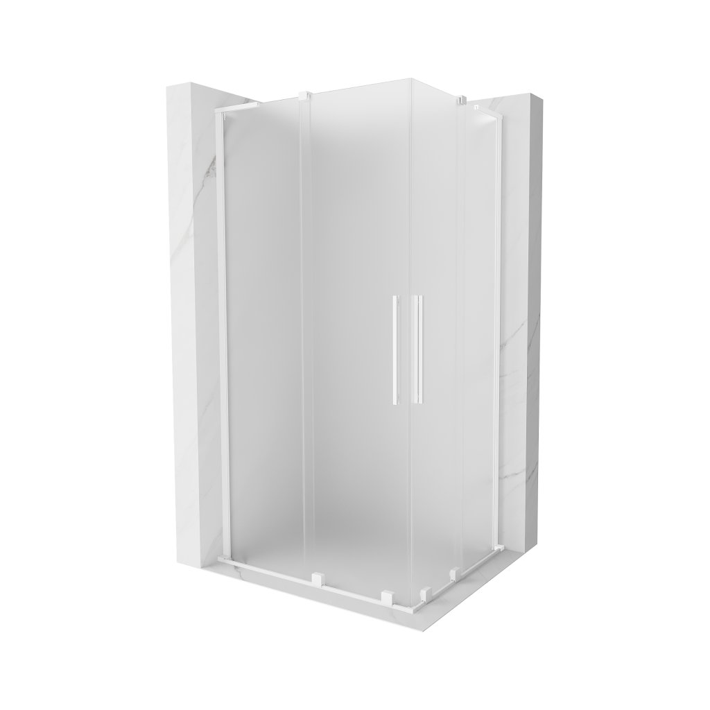 Mexen Velar L Duo, sprchový kout s posuvnými dveřmi 100 x 90 cm, 8mm sklo námraza, bílá matná, 871-100-090-02-33-20