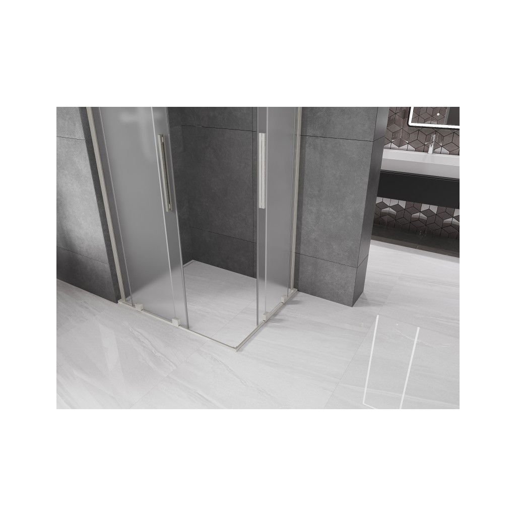 Mexen Velar L Duo, sprchový kout s posuvnými dveřmi 100 x 90 cm, 8mm sklo námraza, broušená ocel, 871-100-090-02-33-97