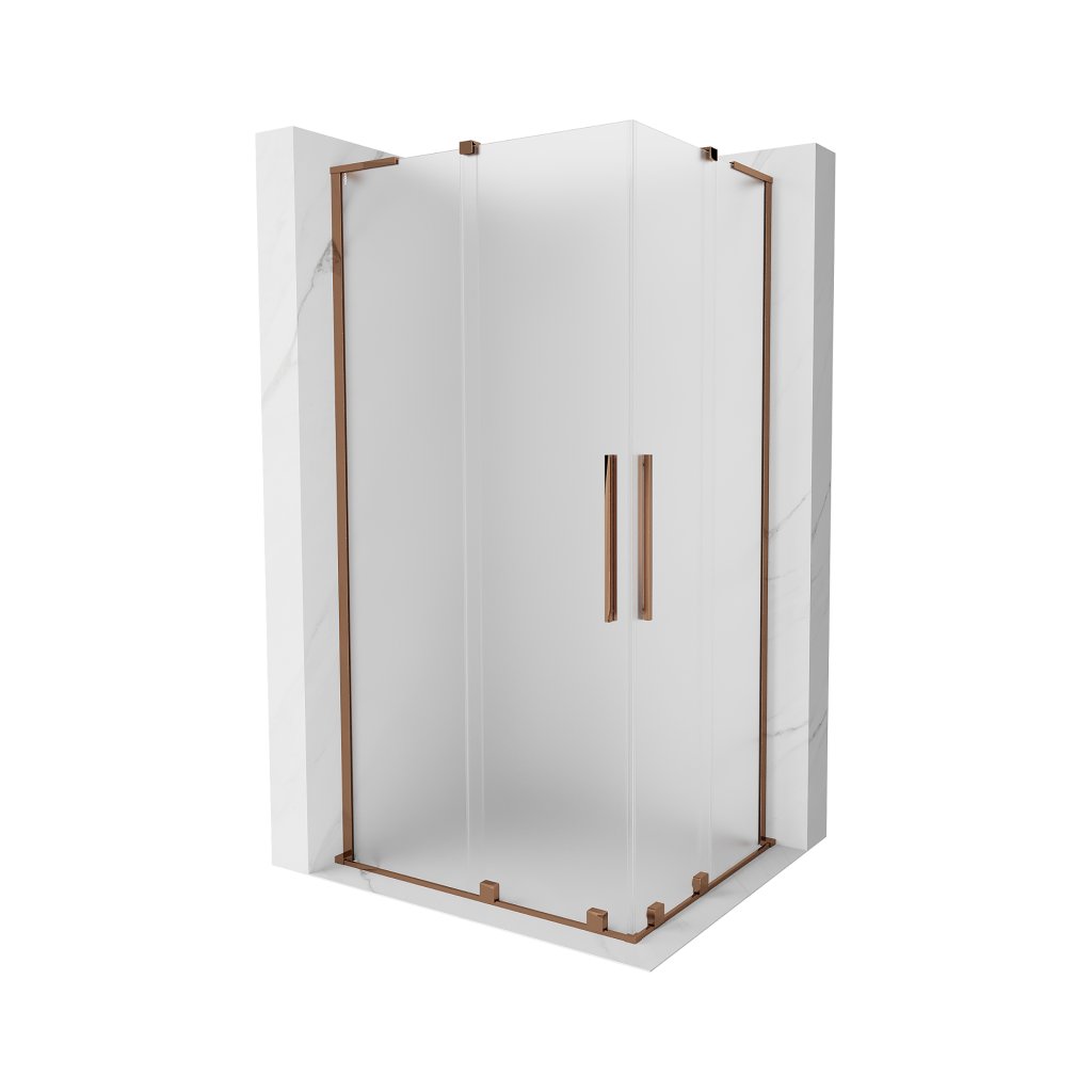 Mexen Velar L Duo, sprchový kout s posuvnými dveřmi 100 x 90 cm, 8mm sklo námraza, růžové zlato, 871-100-090-02-33-60