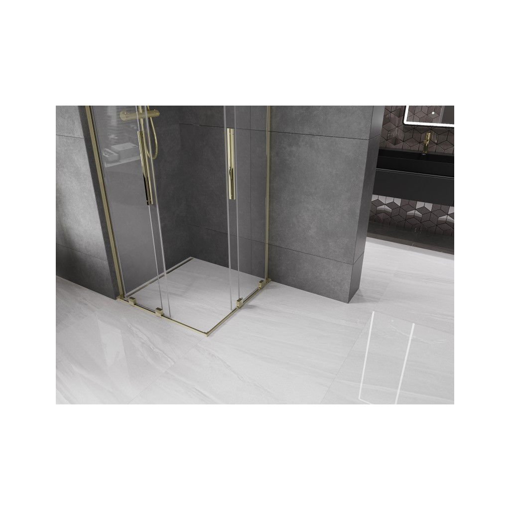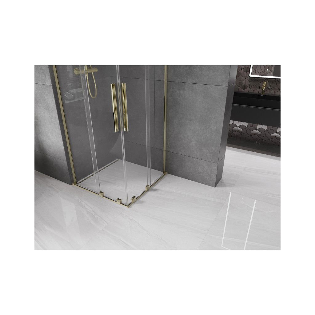 Mexen Velar L Duo, sprchový kout s posuvnými dveřmi 80 x 80 cm, 8mm čiré sklo, zlatá lesklá, 871-080-080-02-03-50