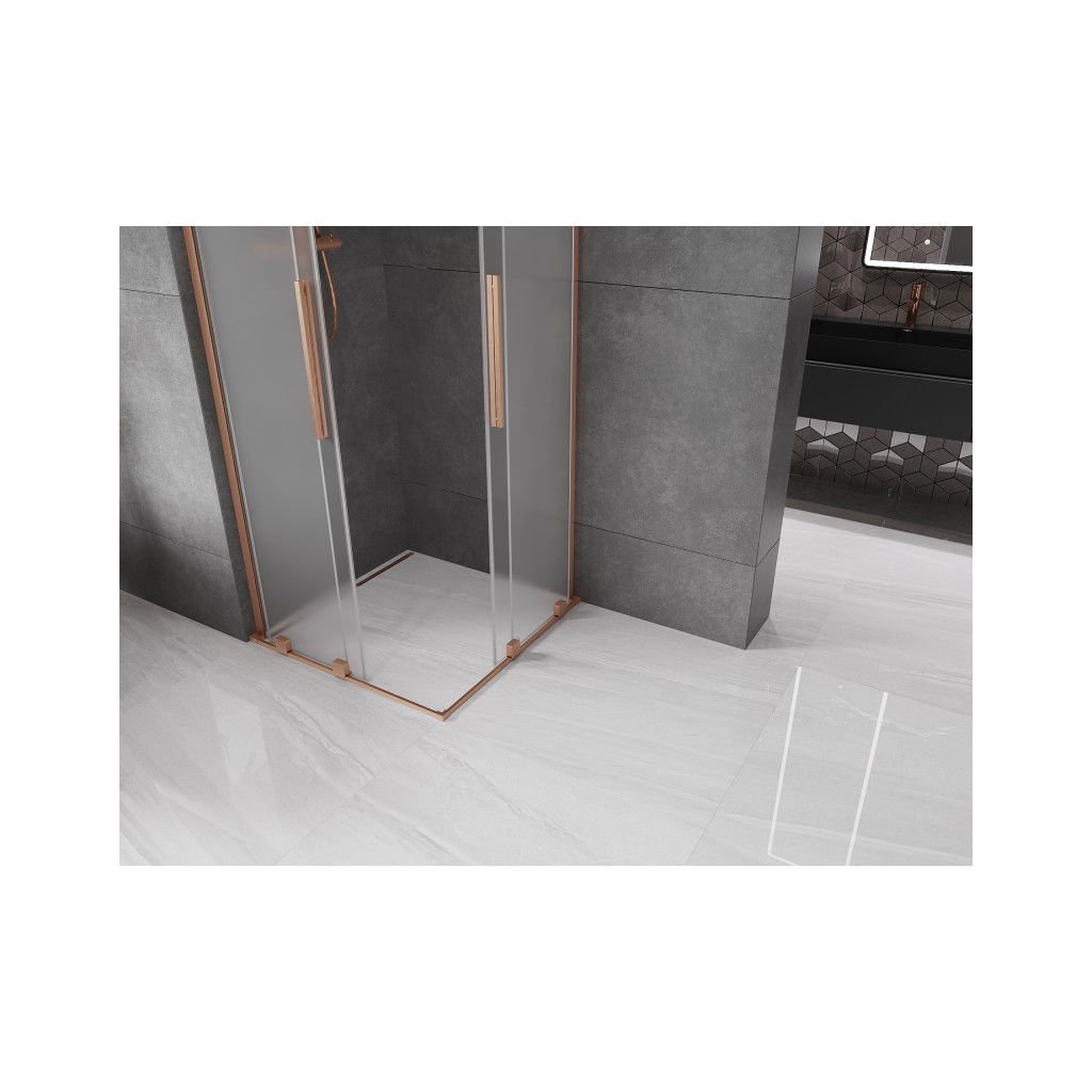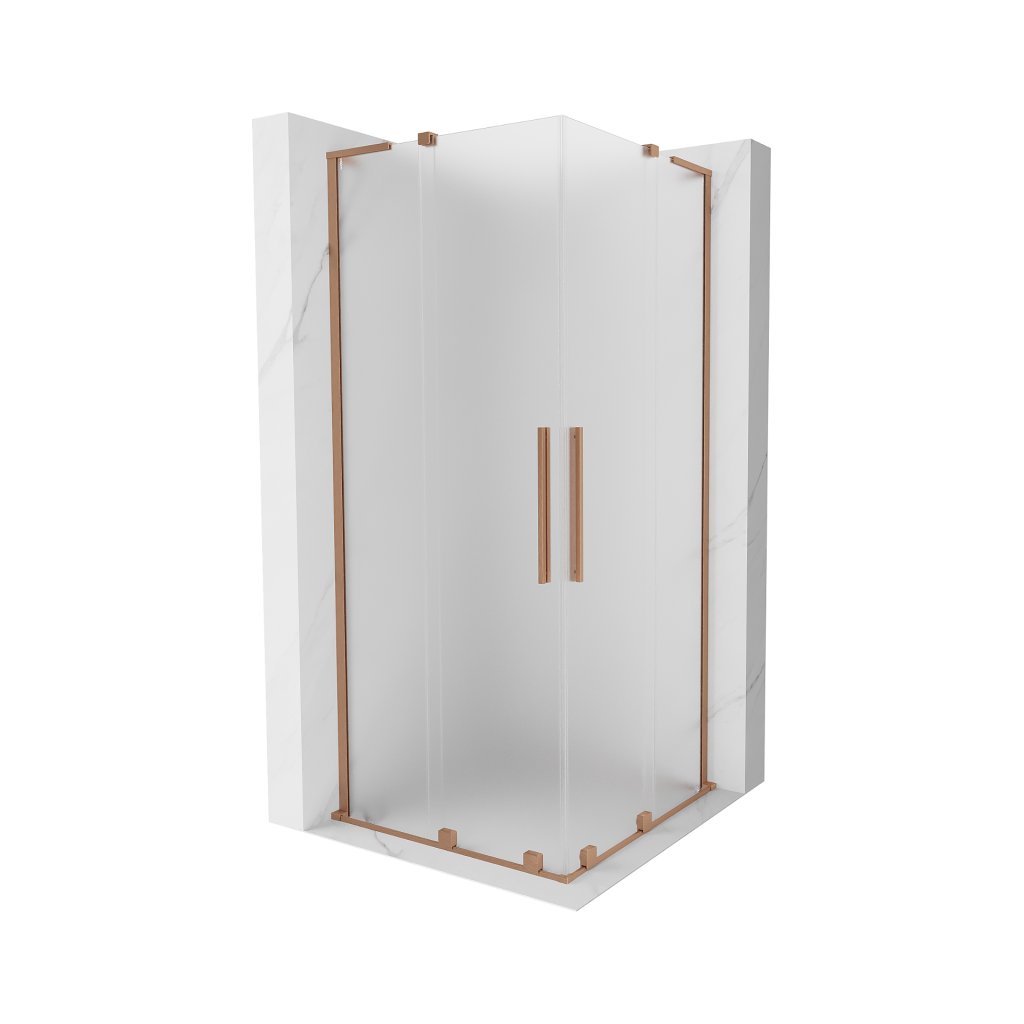 Mexen Velar L Duo, sprchový kout s posuvnými dveřmi 80 x 80 cm, 8mm sklo námraza, měděná matná, 871-080-080-02-33-65