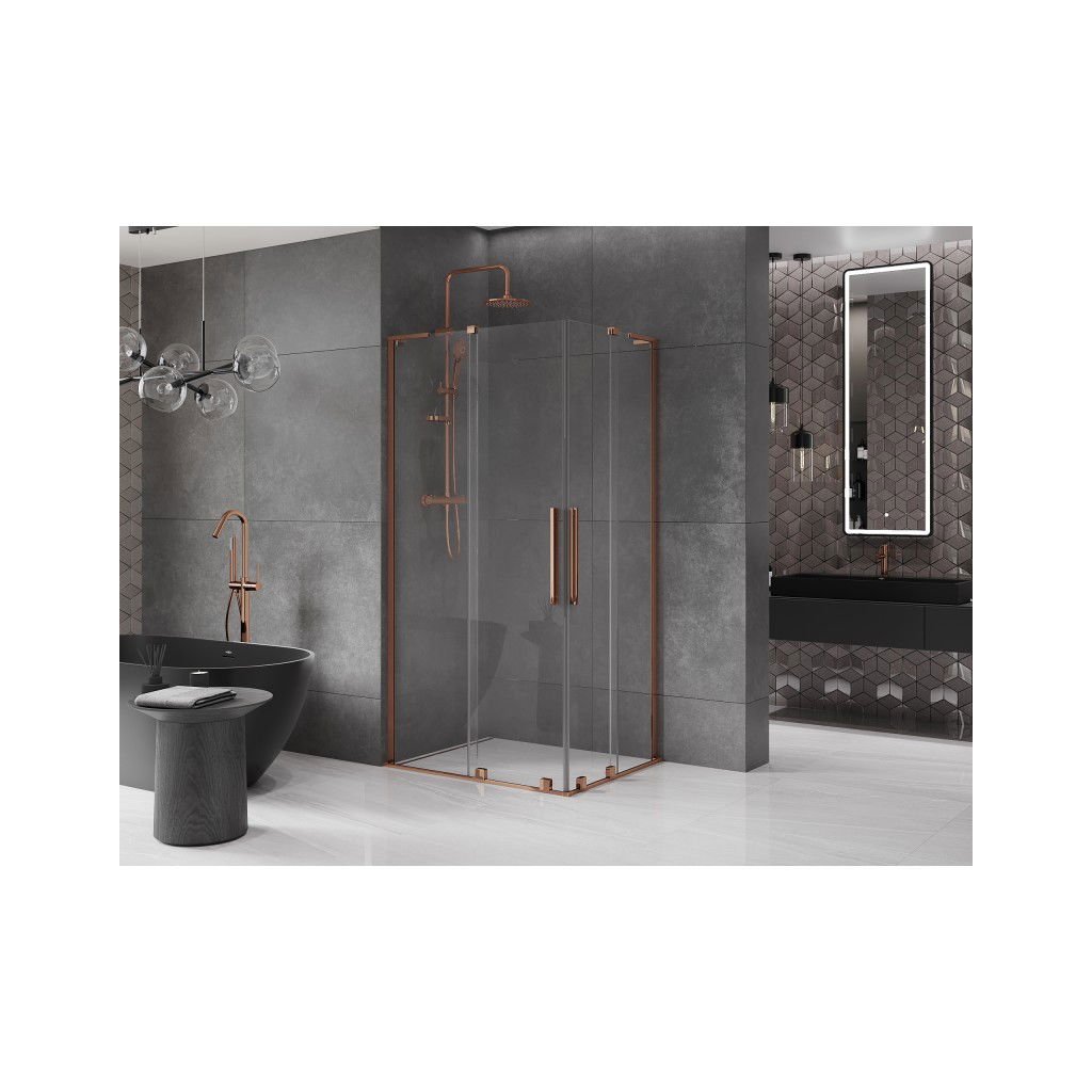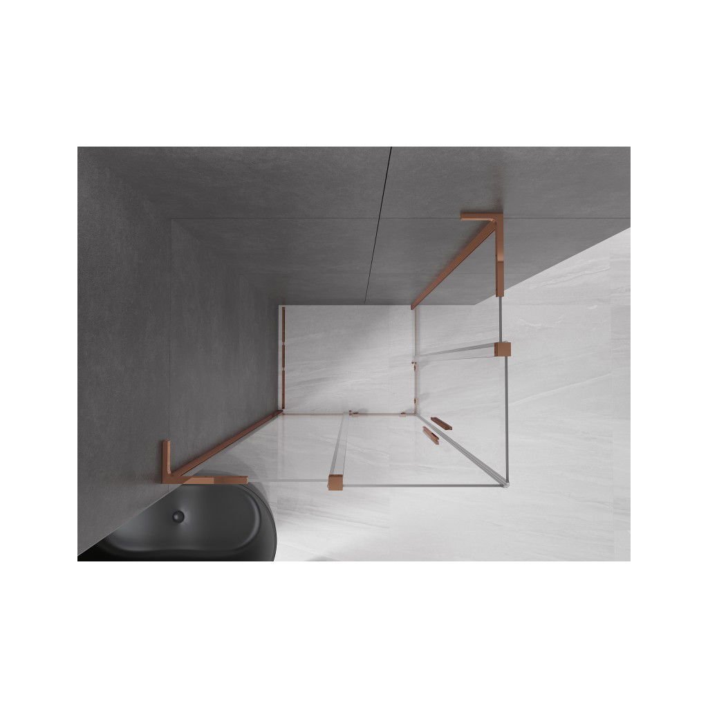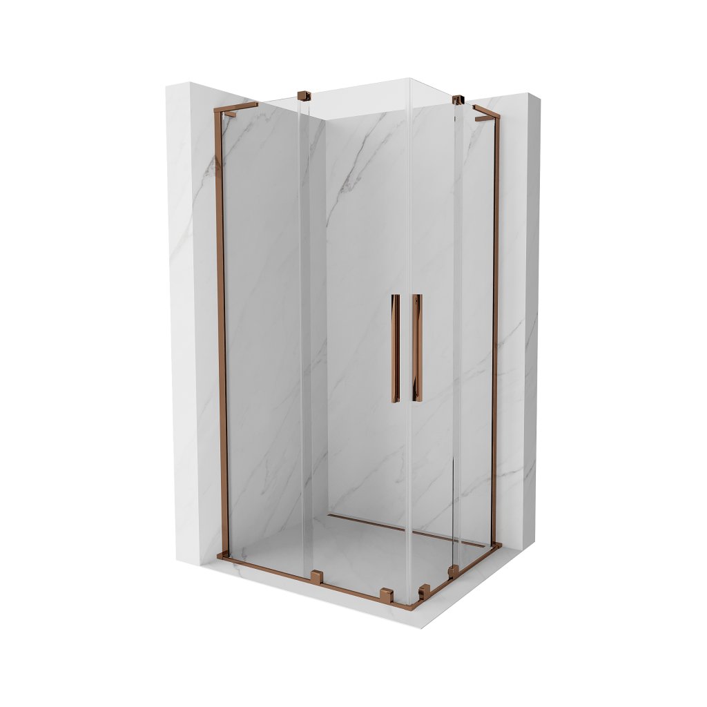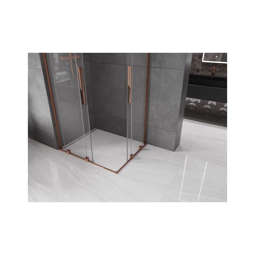 Mexen Velar L Duo, sprchový kout s posuvnými dveřmi 90 x 80 cm, 8mm čiré sklo, růžové zlato, 871-090-080-02-03-60