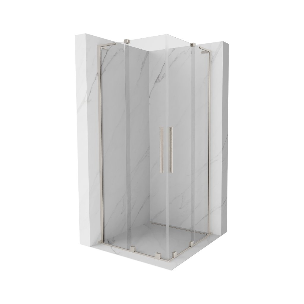 Mexen Velar L Duo, sprchový kout s posuvnými dveřmi 90 x 90 cm, 8mm čiré sklo, broušená ocel, 871-090-090-02-03-97
