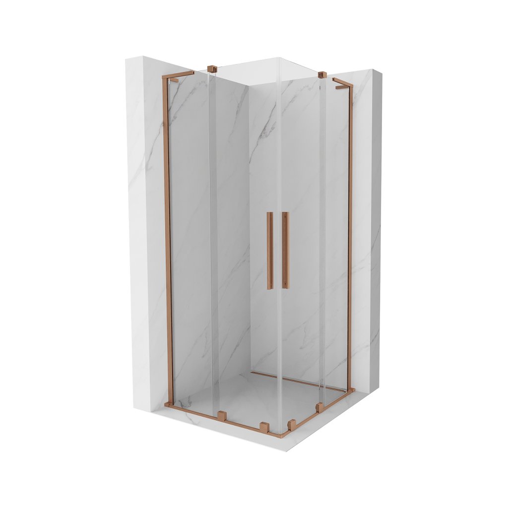 Mexen Velar L Duo, sprchový kout s posuvnými dveřmi 90 x 90 cm, 8mm čiré sklo, měděná matná, 871-090-090-02-03-65